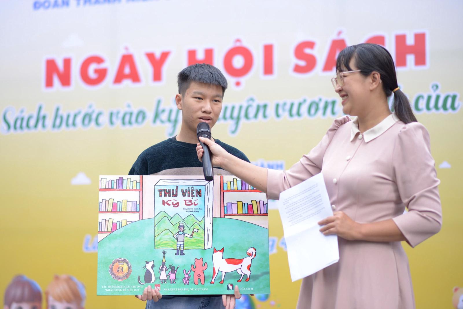 Với truyện "Thư viện kỳ bí" do em Lê Sinh Hùng, học sinh lớp 9 Trường THCS Quang Trung sáng tác và tự vẽ minh họa đã khai thác về đề tài môi trường và văn hóa đọc với nội dung nói tình bạn chân thành với cún Lu, mèo Luna và những người bạn tưởng tượng trong các tác phẩm văn học về môi trường.