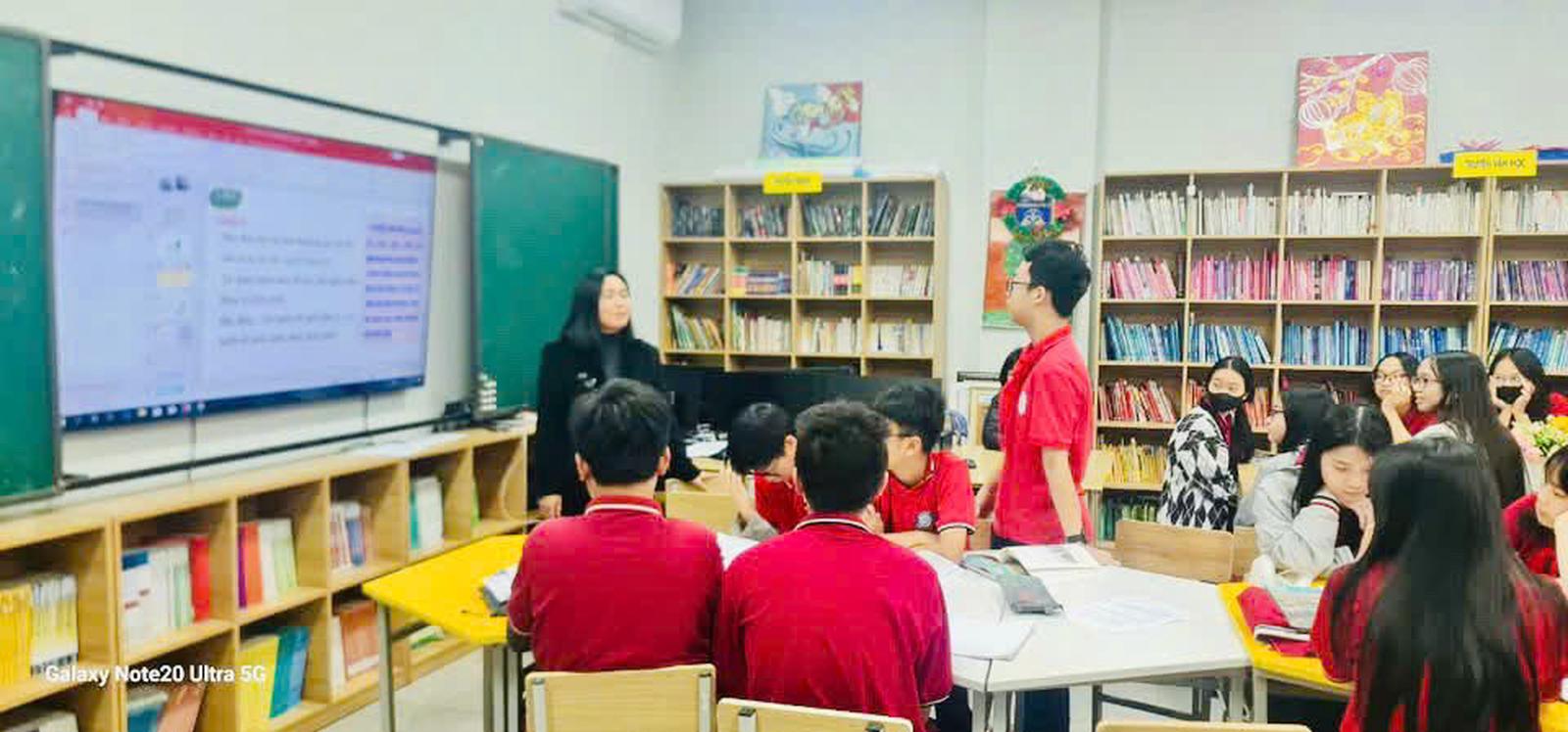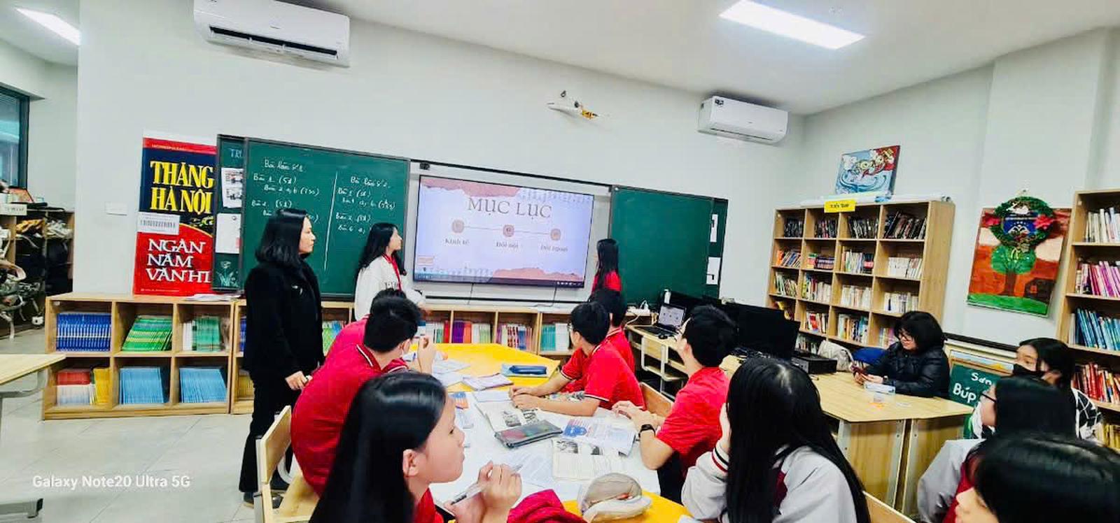 Học sinh Trường THCS Chu Văn An học môn Lịch sử tại thư viện với cô Trần Thái Lan. Ảnh: CVA
