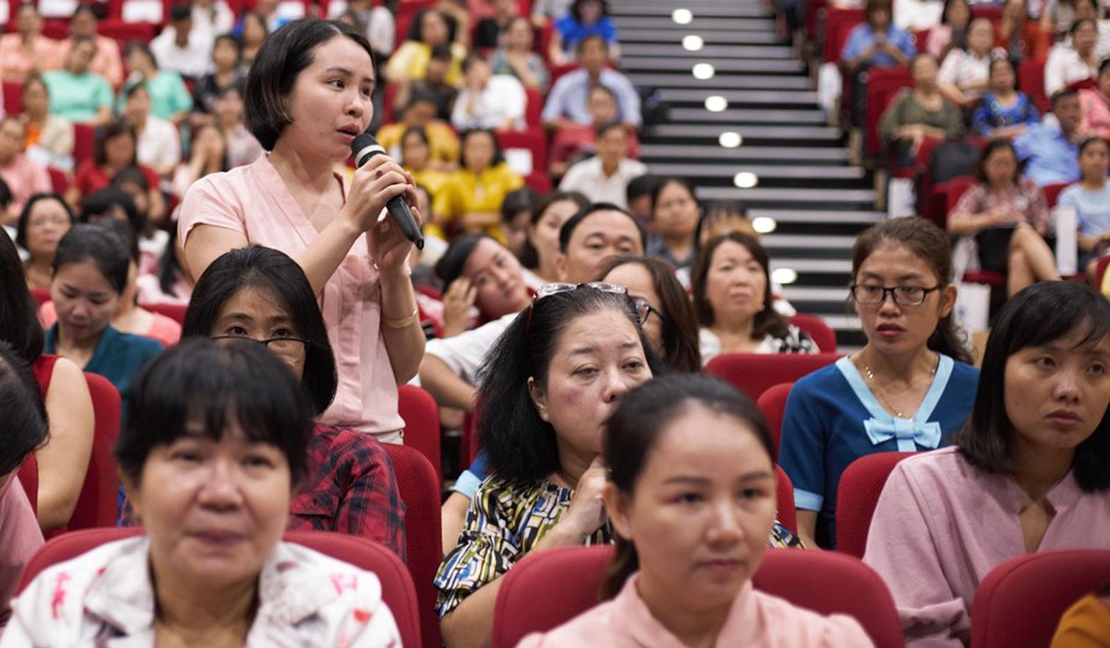 Tham dự các lớp tập huấn để có kiến thức tổ chức, hướng dẫn cho các con uống sữa tại lớp. Ảnh: XH