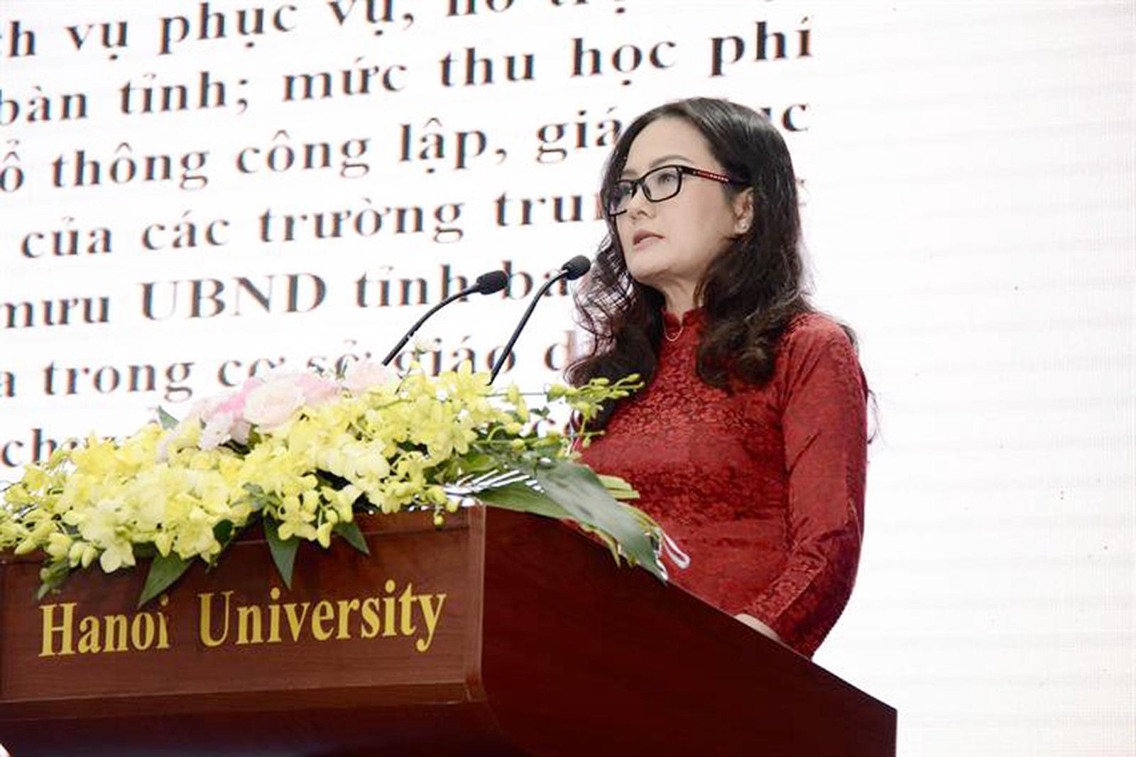 Vụ trưởng Vụ Pháp chế Mai Thị Anh cho biết, tính đến tháng 8/2024, có 171/174 cơ sở giáo dục đại học công lập (không tính cơ sở giáo dục đại học thuộc quân đội, công an); 58/60 cơ sở giáo dục đại học tư thục đã thành lập hội đồng trường; 242/242 cơ sở giáo dục đại học thành lập phòng hoặc bố trí cán bộ làm công tác pháp chế. Ảnh: LP