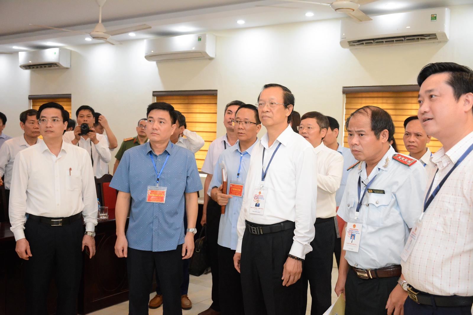 Thứ trưởng Bộ Giáo dục và Đào tạo cùng đoàn công tác kiểm tra tủ bảo quản bài thì tại các điểm thi. Ảnh: TT