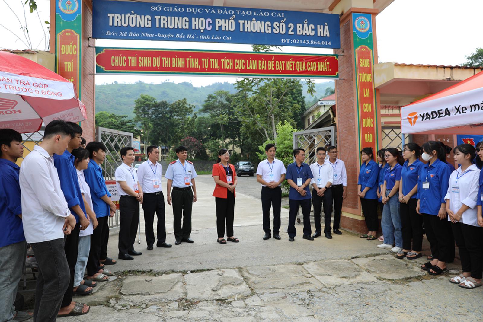 Bà Giàng Thị Dung, Phó Chủ tịch UBND tỉnh, Trưởng Ban Chỉ đạo kỳ thi tốt nghiệp THPT năm 2024 tỉnh Lào Cai đi kiểm tra một điểm thi