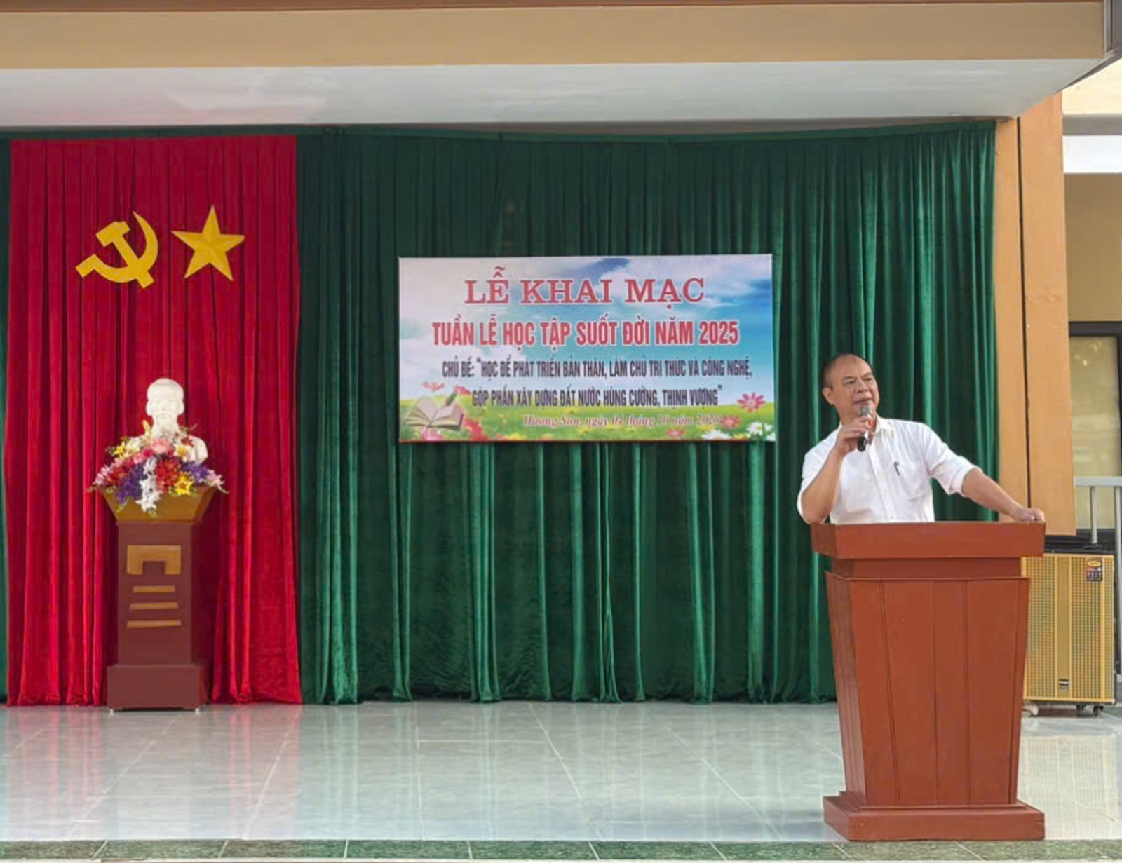 Hiệu trưởng Trần Đình Khôi phát biểu khai mạc tại tuần lễ học tập suốt đời 2025. Ảnh: NVCC
