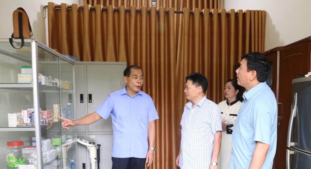 Các thành viên đoàn kiểm tra phòng y tế và vật tư y tế phục vụ kỳ thi tại điểm thi Trường THPT Cao Lộc. Ảnh: BLS