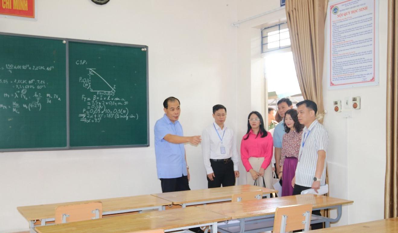 Giám đốc Sở Giáo dục và Đào tạo, Phó Trưởng Ban Thường trực Ban Chỉ đạo tuyển sinh THPT năm 2025-2026 làm trưởng đoàn kiểm tra phòng thi tại điểm thi Trường THPT chuyên Chu Văn An. Ảnh: BLS