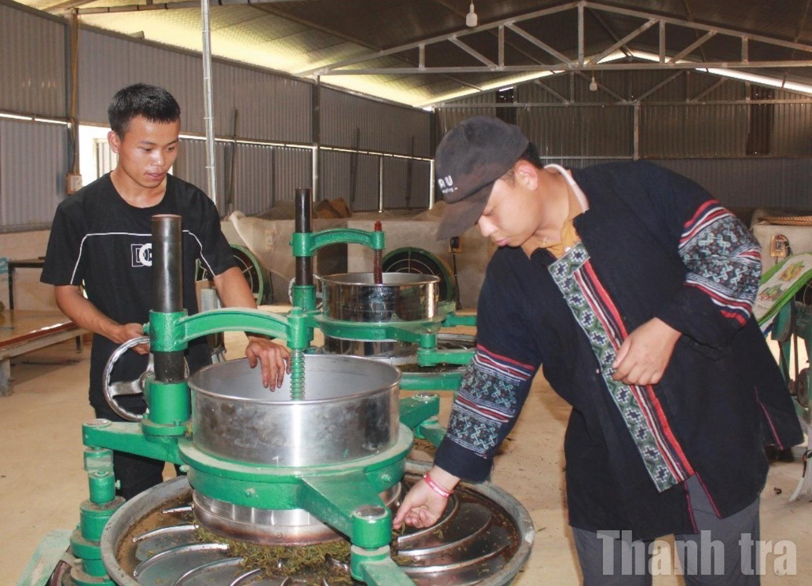 Người dân xã Phình Hồ chế biến chè Shan tuyết. Ảnh Bình Yên