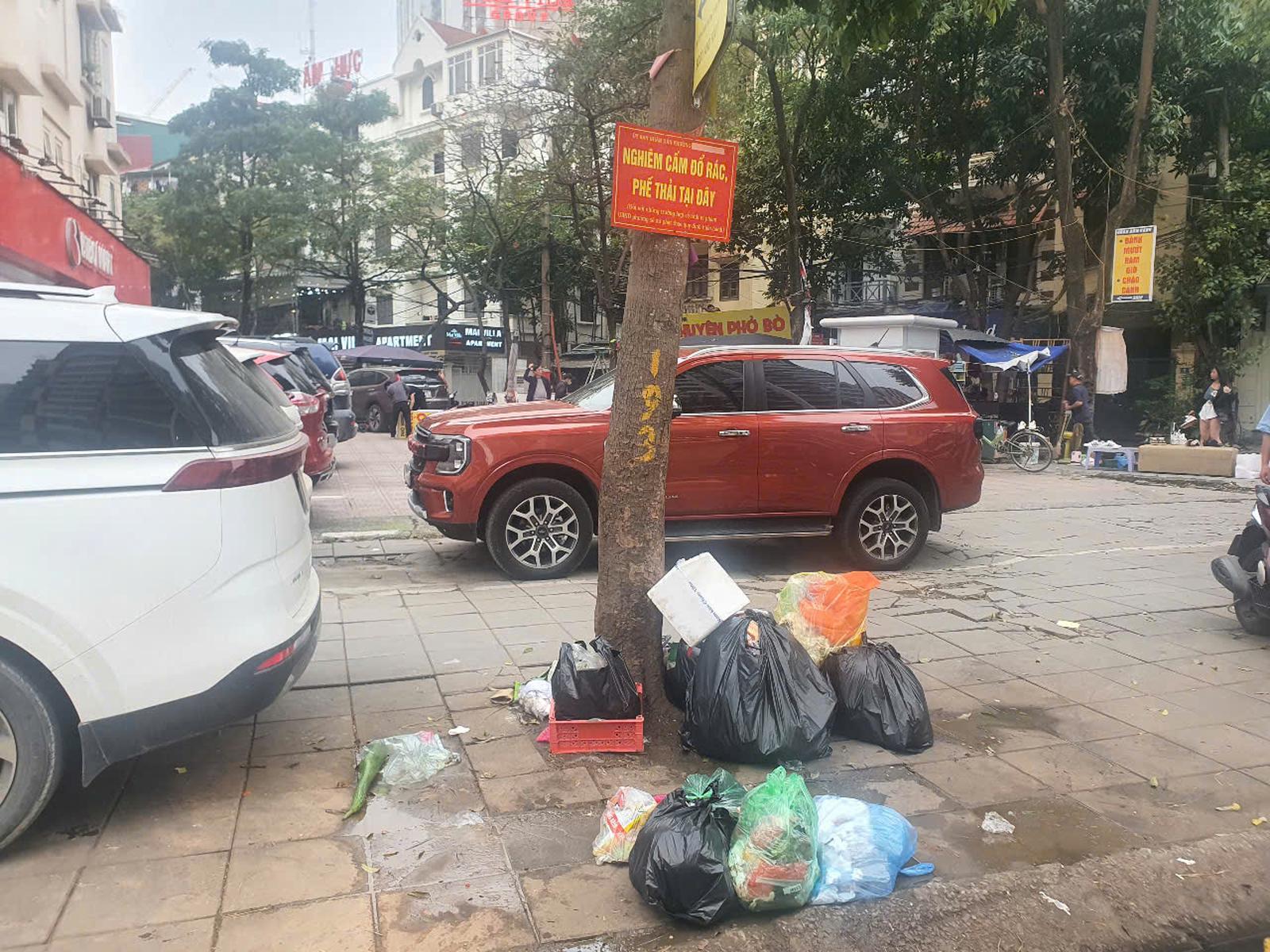 Tại Thủ đô không khó để bắt gặp hình ảnh trên thì biển cấm, dưới thì tràn lan rác. Ảnh: Hải Hà