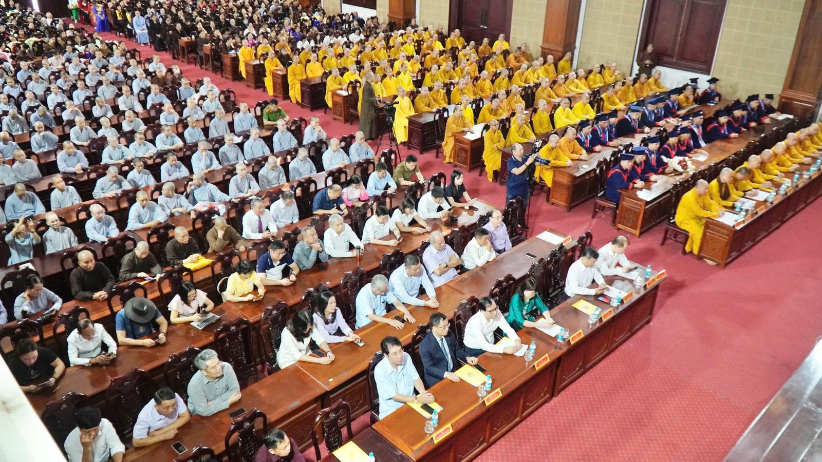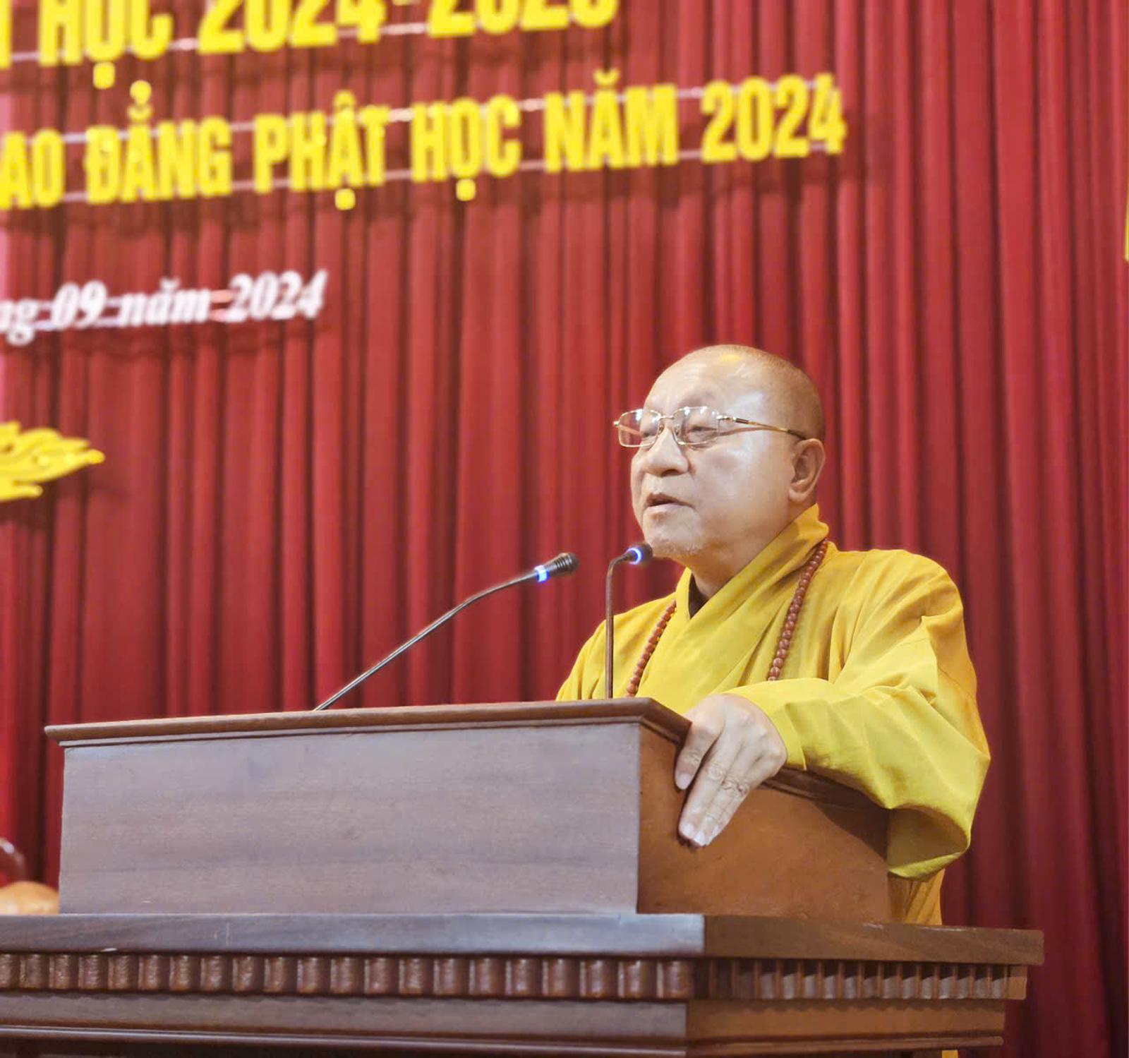 Đại diện Giáo hội Phật giáo Việt Nam, Hoà thượng Thích Gia Quang, Phó Chủ tịch Hội đồng Trị sự đã biểu dương, ghi nhận những thành tích đáng tự hào về công tác giảng dạy, tu-học của Học viện trong những năm qua. Đồng thời, Giáo hội mong muốn, tăng ni sinh phát huy bề dày truyền thống về giáo dục mà các chư tôn đức tiền bối đã dày công vun đắp, xây dựng. Từ đó, tinh tấn tu học để trở thành những tấm gương mẫu mực về đạo hạnh, tri thức cho đời, cho đạo. Bởi, giáo dục là nền tảng, động lực, nguồn lực cho sự phát triển.