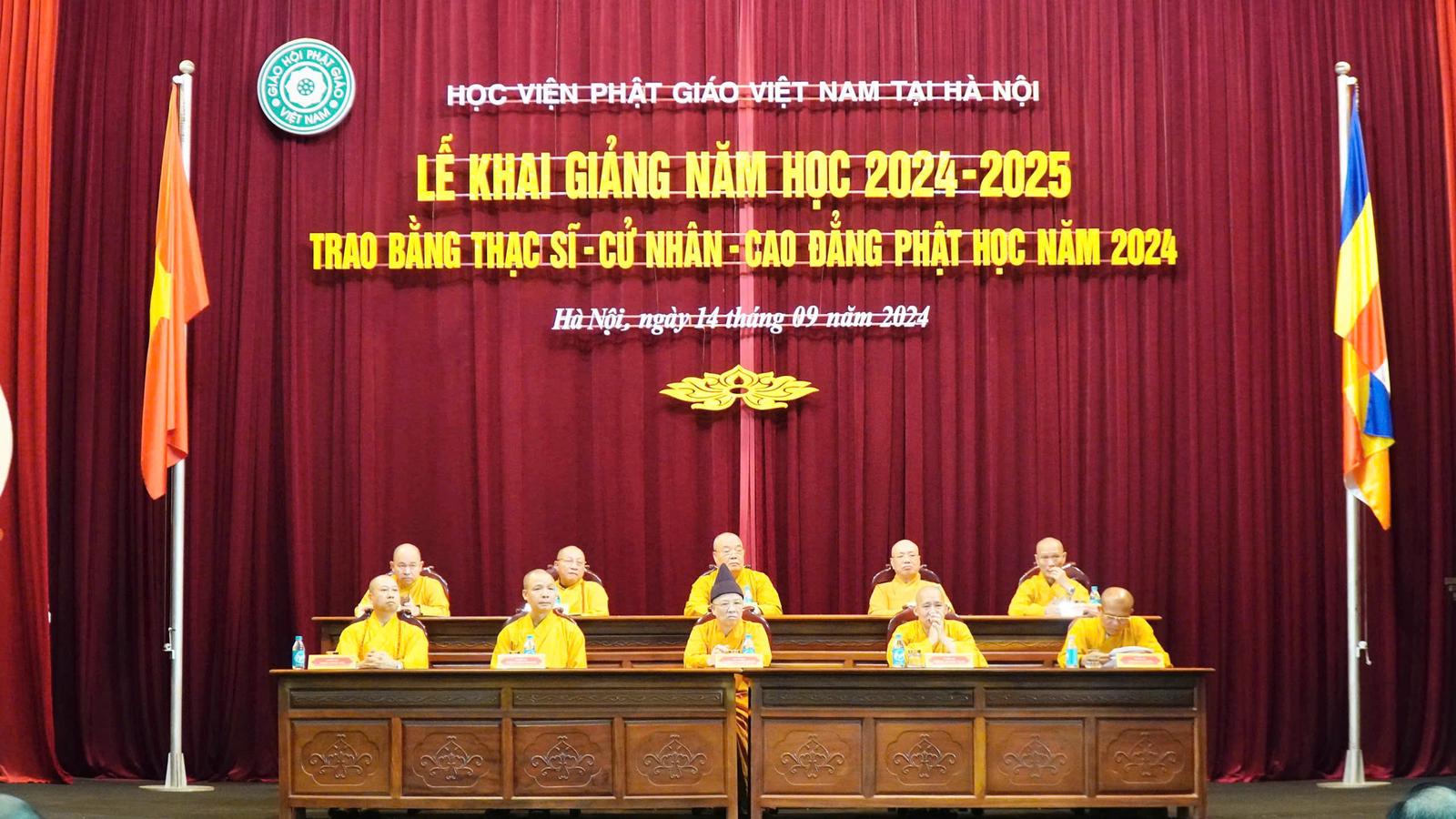 Tại buổi lễ, Hòa thượng Thích Thanh Quyết, Viện trưởng kiêm Chủ tịch Hội đồng Điều hành Học viện đã gióng trống khai giảng năm học 2024 - 2025. Hòa thượng Thích Thanh Nhiễu, Phó Chủ tịch Thường trực Hội đồng Trị sự Giáo hội Phật giáo Việt Nam đã trao học bổng Đức Nhuận tặng nhà trường.
