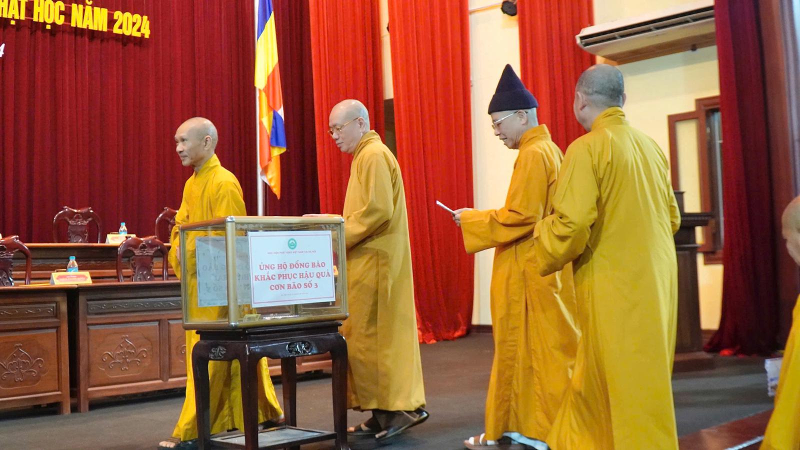 Hưởng ứng Lời kêu gọi của Tổng Bí thư, Chủ tịch nước Tô Lâm và Đoàn Chủ tịch Ủy ban Trung ương Mặt trận Tổ quốc Việt Nam, Học viện Phật giáo Việt Nam tại Hà Nội tổ chức khai giảng năm nay không nhận hoa chúc mừng, dành nguồn kinh phí đó để cùng chung tay ủng hộ đồng bào khắc phục ảnh hưởng của cơn bão số 3, với ý nghĩa "Lễ khai giảng - Tấm lòng Vàng", mang lại sự ấm áp tình người trong mùa bão lũ.