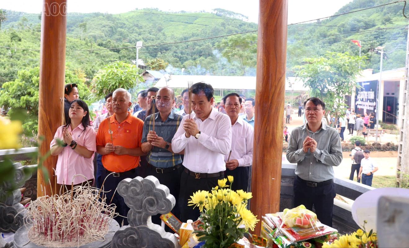 Các đại biểu dâng hương tưởng niệm các nạn nhân bị thiệt mạng và mất tích do hoàn lưu bão số 3 tại thôn Làng Nủ. Ảnh: Báo Lào Cai