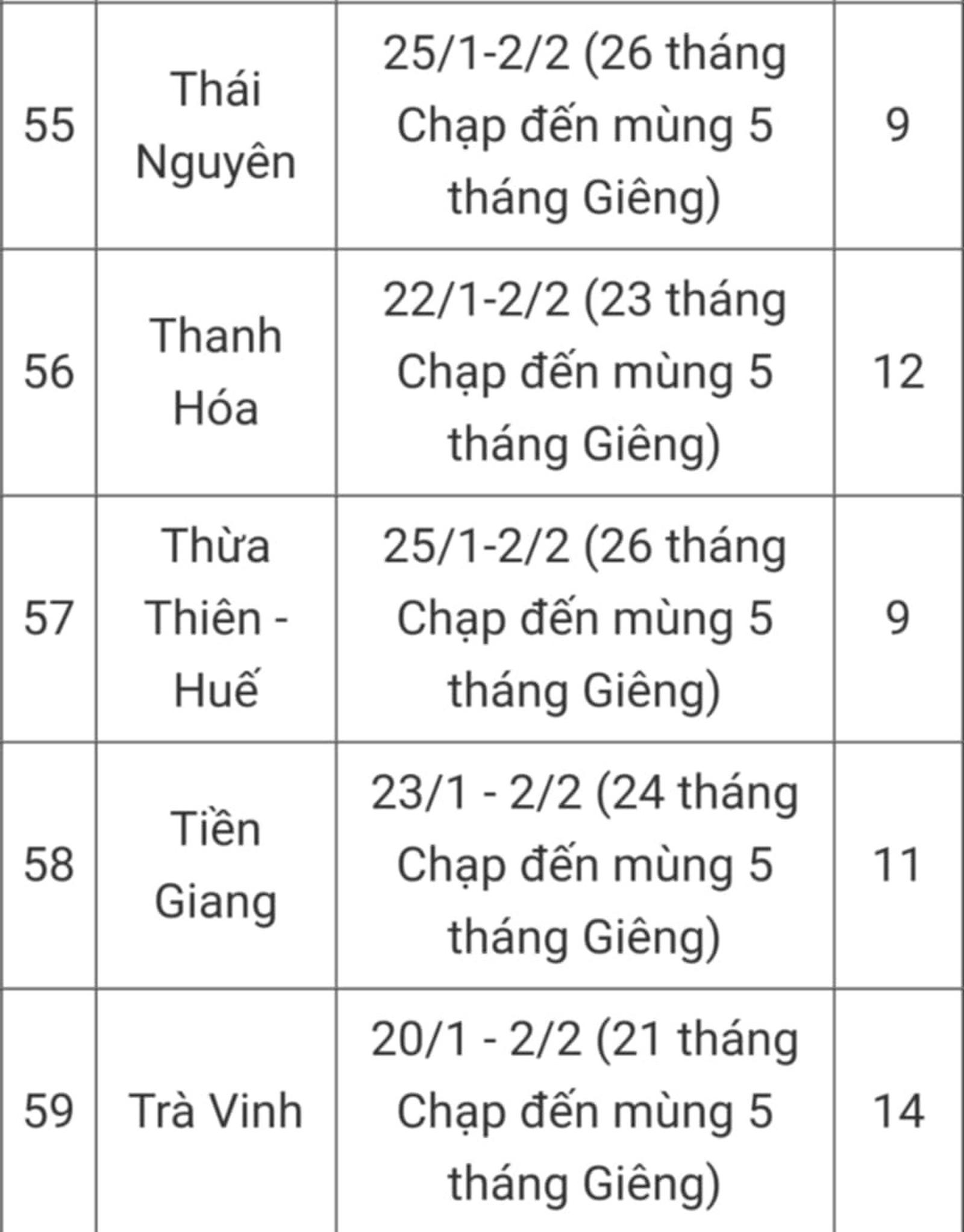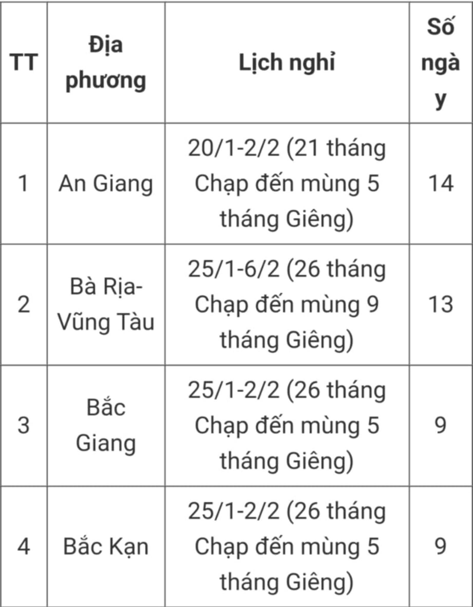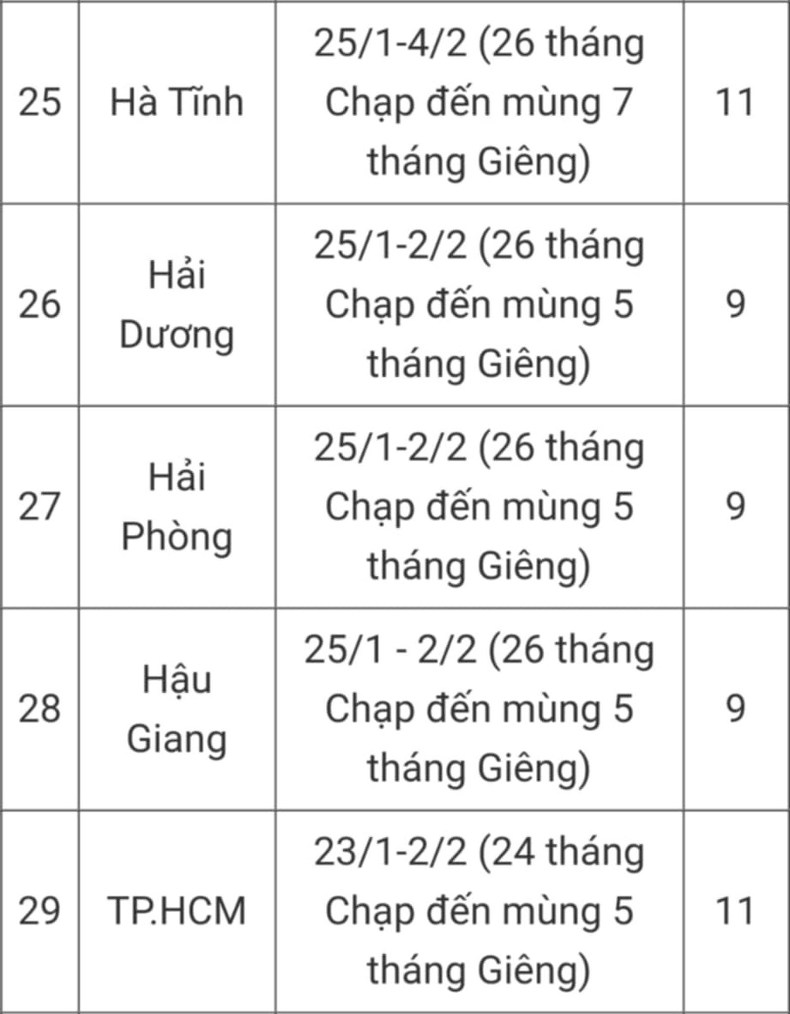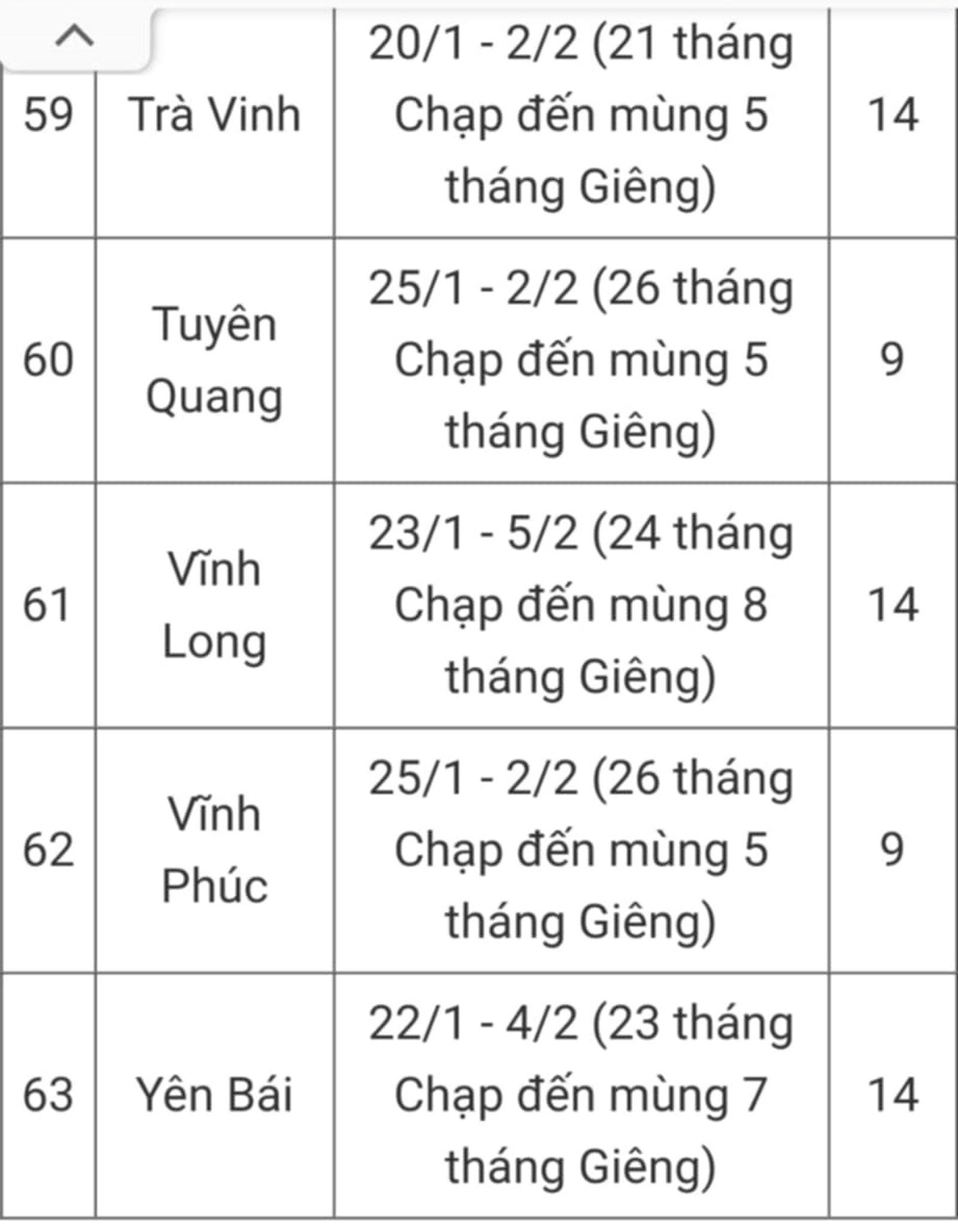 Dưới đây là lịch nghỉ Tết Nguyên đán 2025 của học sinh 63 tỉnh thành, giúp quý phụ huynh và học sinh thuận tiện theo dõi: