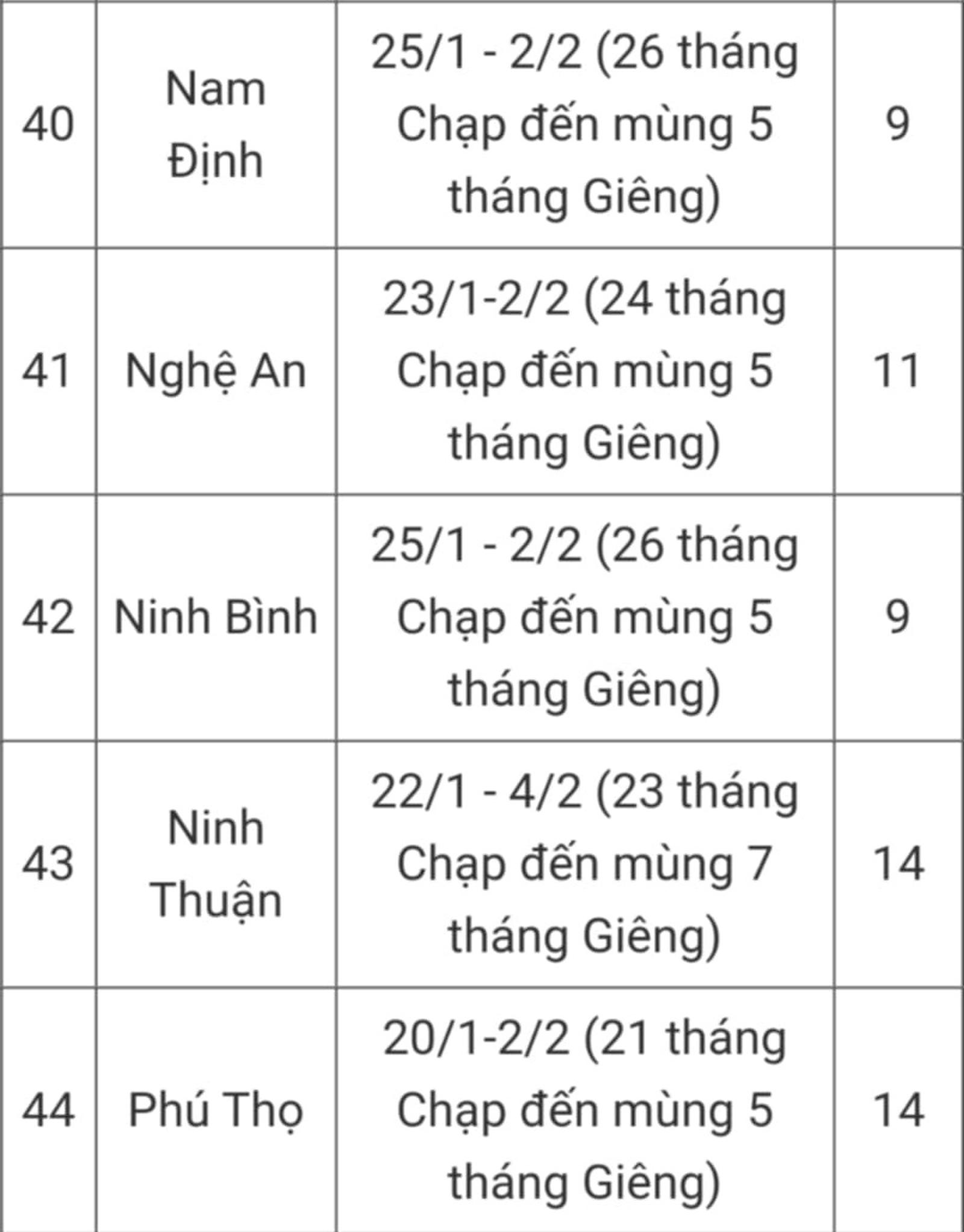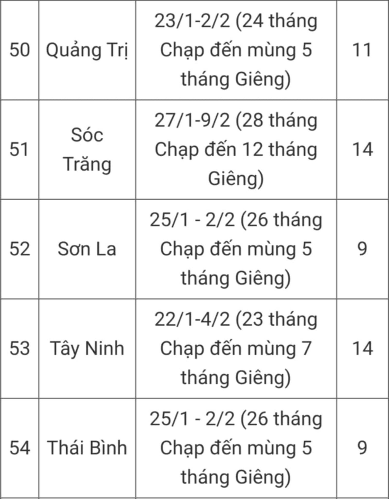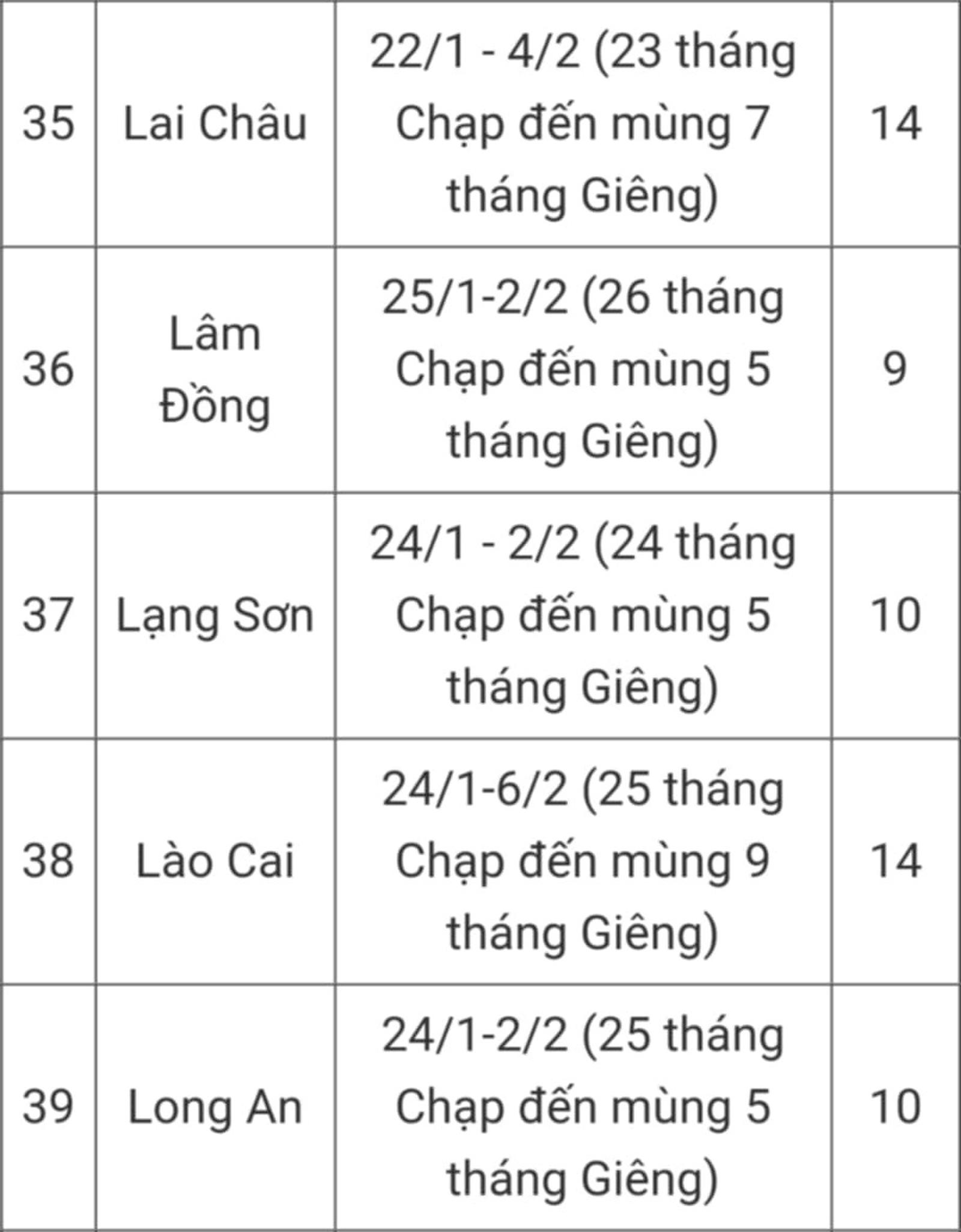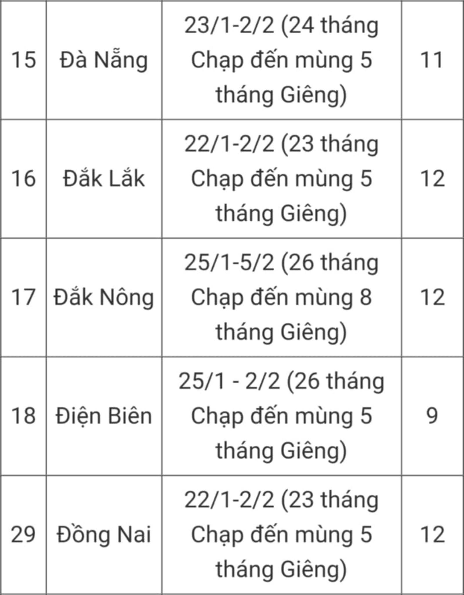 (Thanh tra) - Các tỉnh, thành trên cả nước đã công bố lịch nghỉ Tết Nguyên Đán Ất Tỵ 2025 cho học sinh, trong đó Kon Tum cho học sinh nghỉ Tết âm lịch nhiều nhất là 17 ngày, nghỉ hơn nửa tháng.
