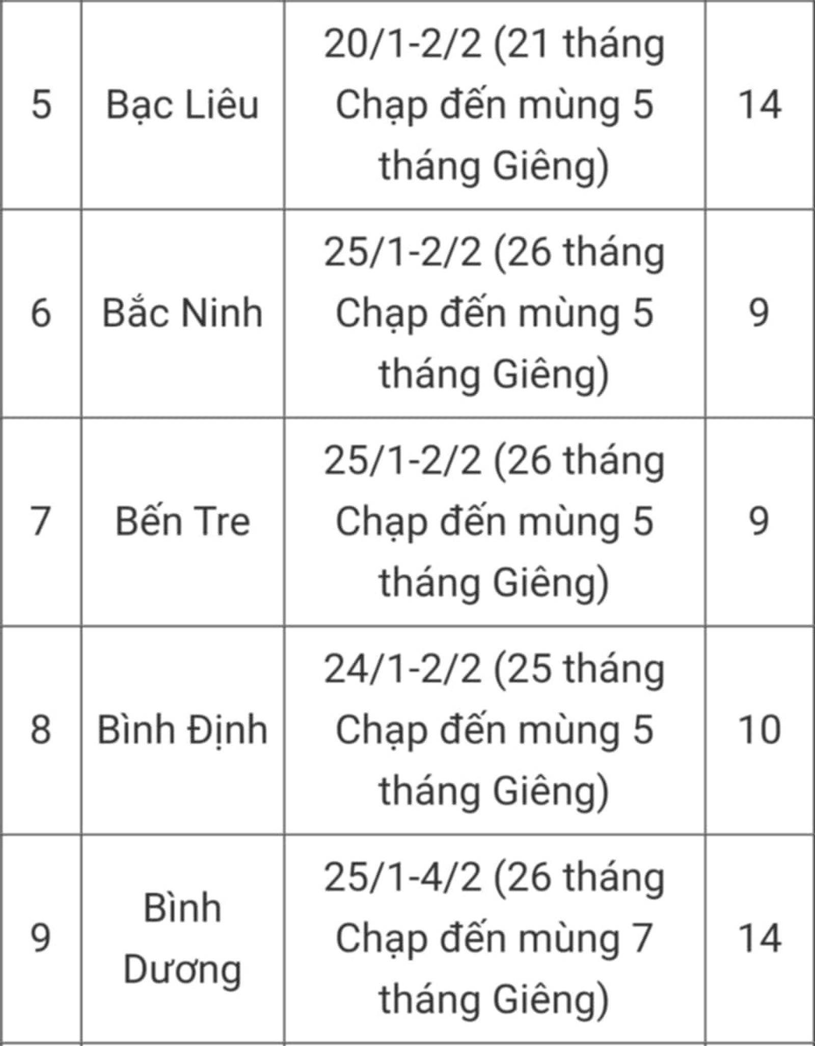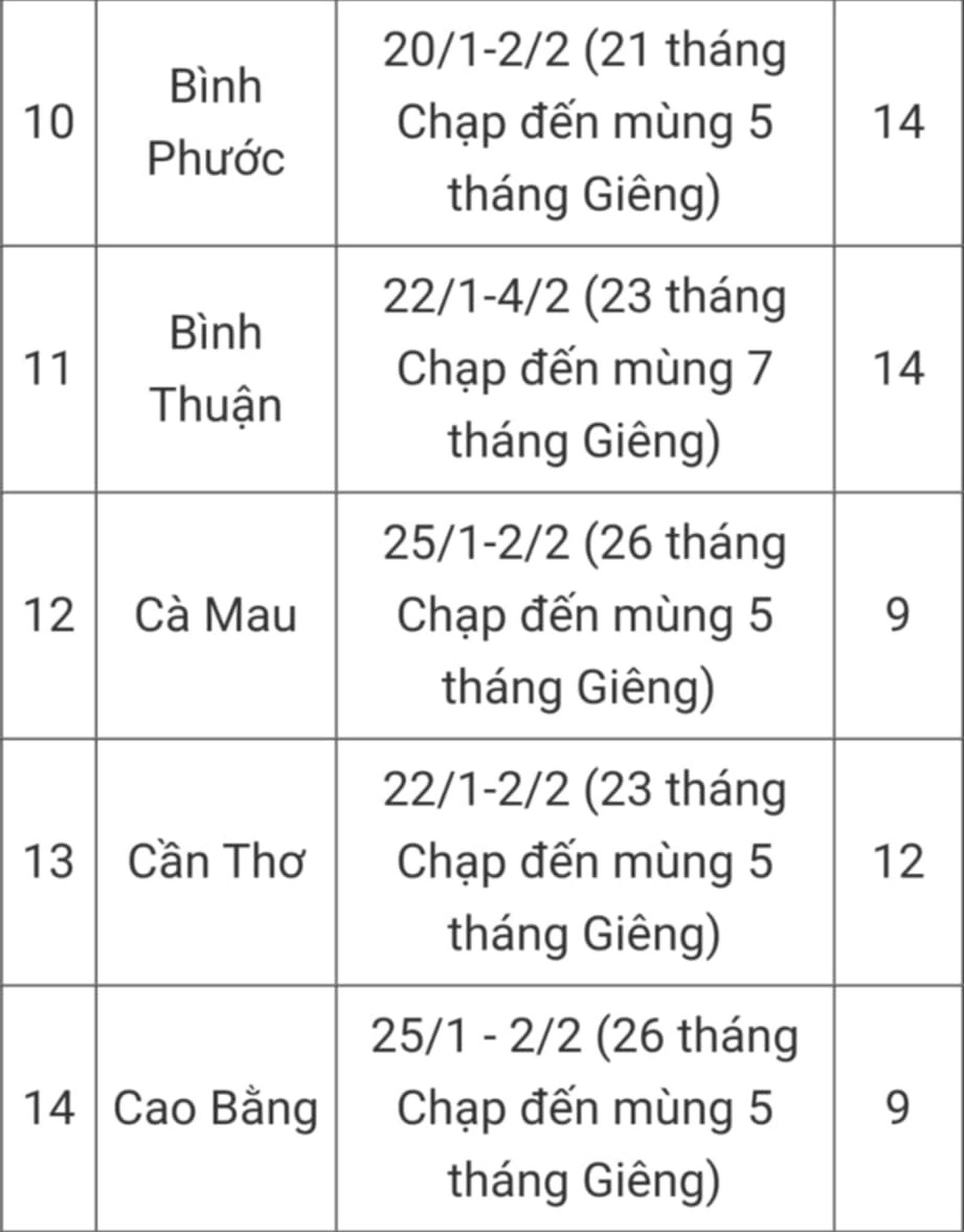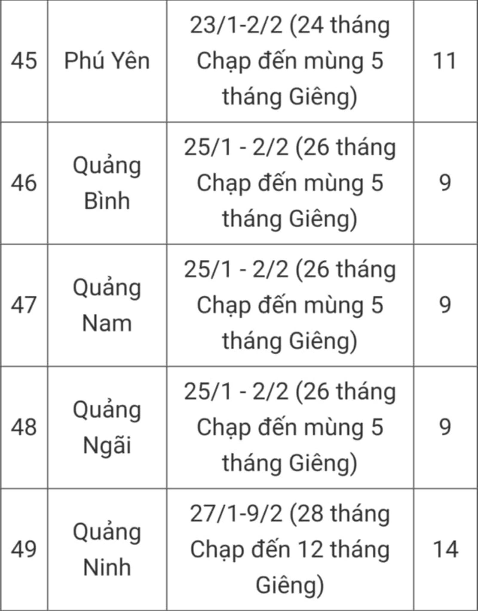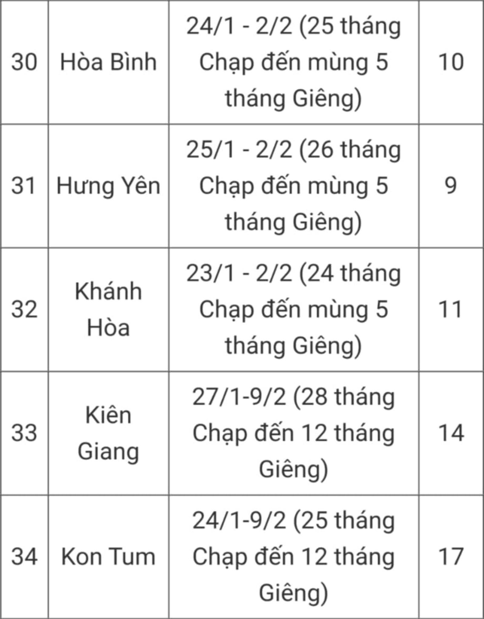 (Thanh tra) - Các tỉnh, thành trên cả nước đã công bố lịch nghỉ Tết Nguyên Đán Ất Tỵ 2025 cho học sinh, trong đó Kon Tum cho học sinh nghỉ Tết âm lịch nhiều nhất là 17 ngày, nghỉ hơn nửa tháng.