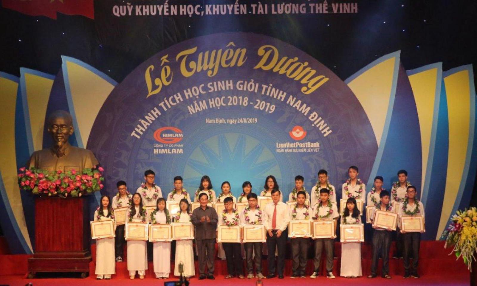 (Thanh tra) – Quỹ Khuyến học Khuyến tài Lương Thế Vinh, tỉnh Nam Định do LienVietPostBank đồng sáng lập và tài trợ vừa tổ chức lễ tuyên dương thành tích học sinh giỏi tỉnh Nam Định năm học 2018-2019.