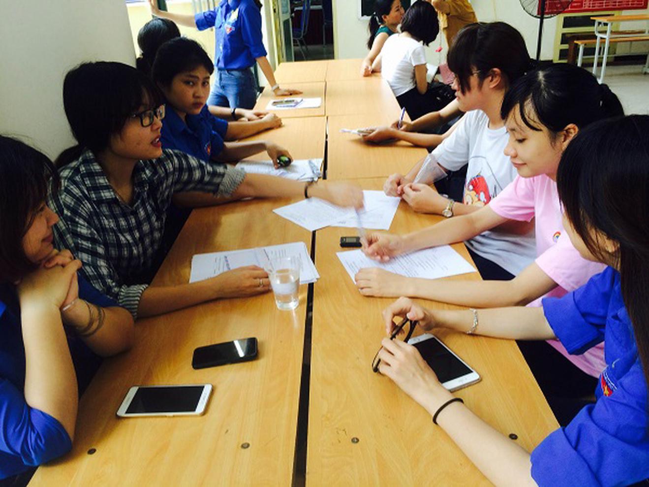Thí sinh nộp hồ sơ tại ĐH Công đoàn. Ảnh: HH