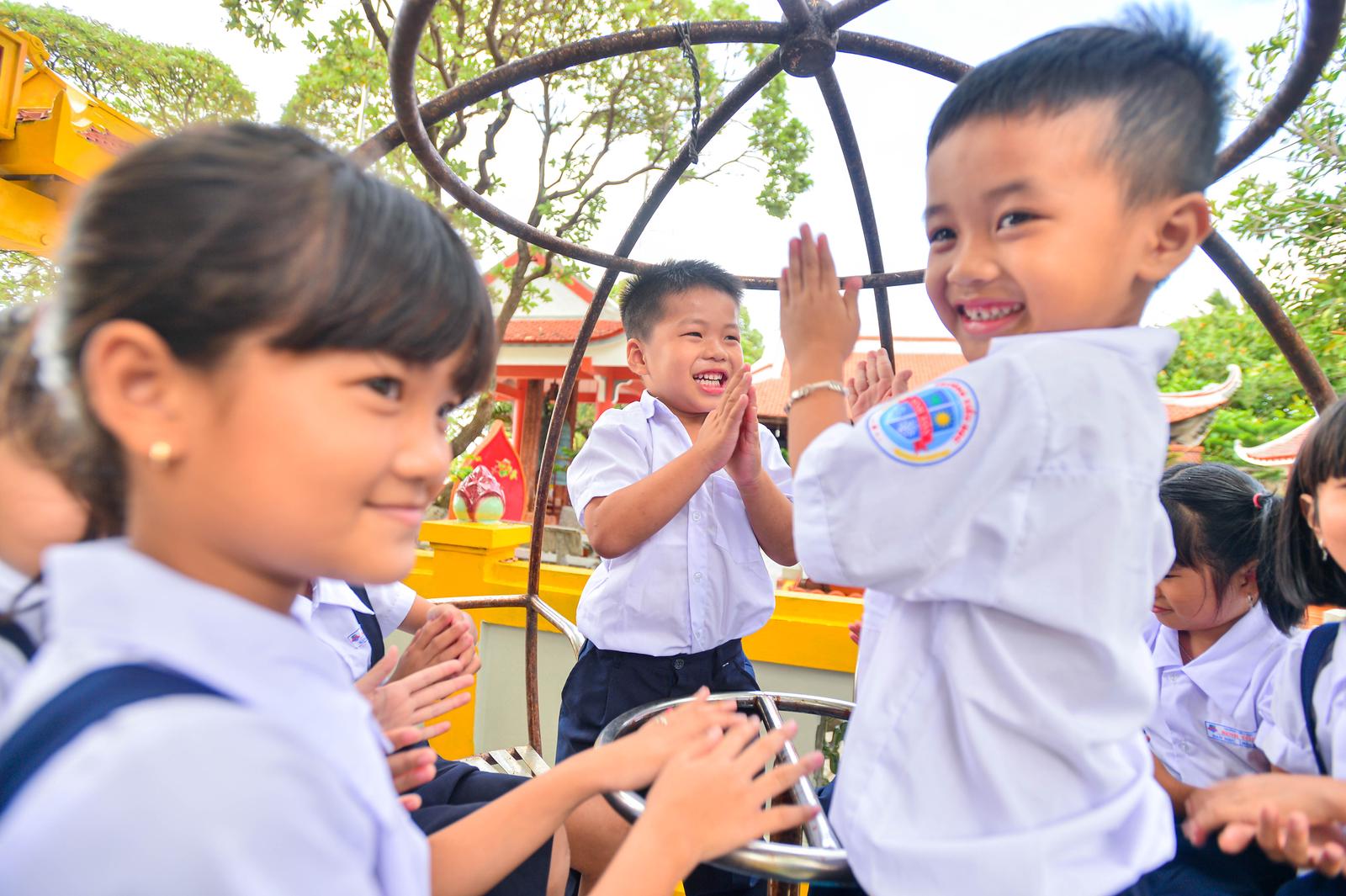Lũ trẻ vui mừng trước ngày khai giảng. Ảnh: Lê Khanh