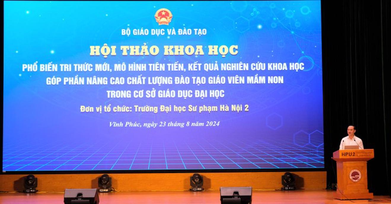 (Thanh tra) - Là chủ đề hội thảo khoa học phổ biến tri thức mới, mô hình tiên tiến, kết quả nghiên cứu khoa học góp phần nâng cao chất lượng đào tạo giáo viên mầm non trong cơ sở giáo dục đại học, diễn ra ngày 23/8, tại Trường Đại học Sư phạm Hà Nội 2 (Vĩnh Phúc).