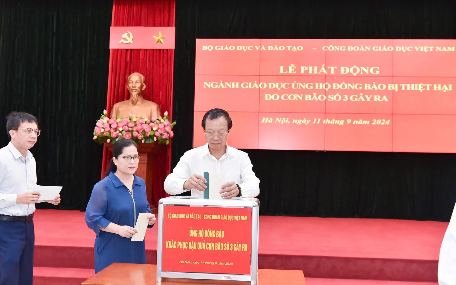 Bộ GDĐT chung tay ủng hộ đồng bào bị thiệt hại do bão số 3. Ảnh: TT