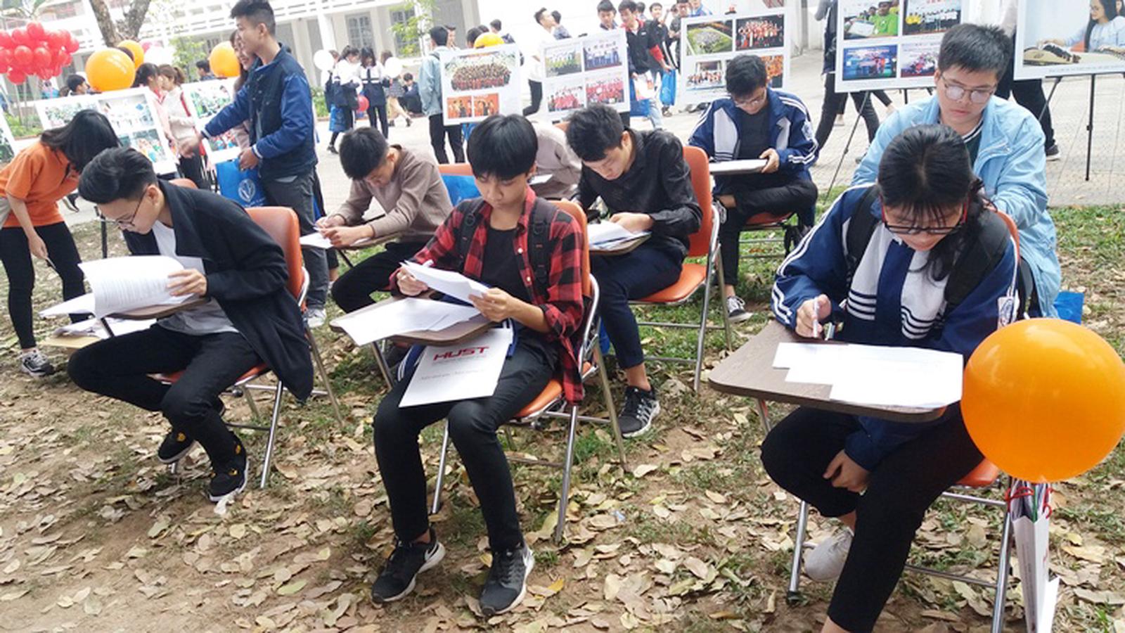Thí sinh làm bài thi thử theo các dạng đề thi mẫu của Bộ GD&ĐT tại gian của Trường ĐH FPT. Ảnh: HH