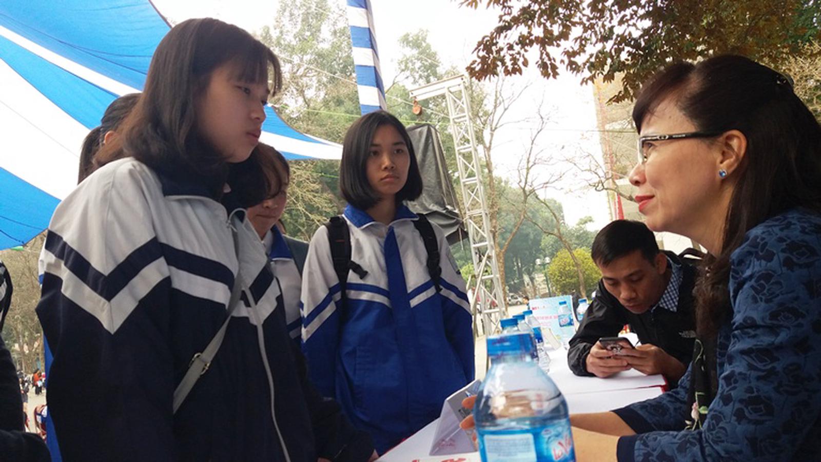 Bà Nguyễn Thị Kim Phụng - Vụ trưởng Vụ Giáo dục ĐH - Bộ GD&ĐT tư vấn cho thí sinh. Ảnh: HH