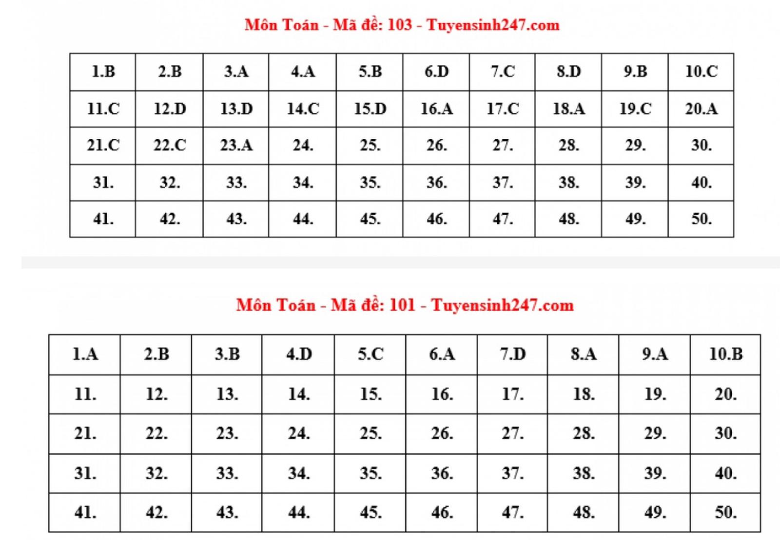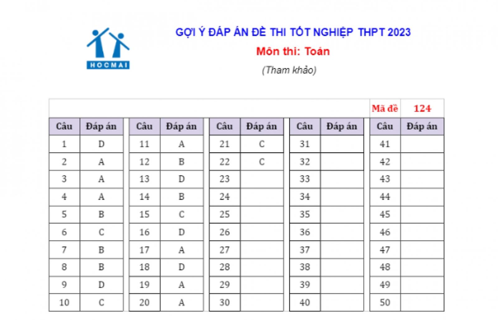 Gợi ý đáp án đề thi môn Toán kỳ thi tốt nghiệp THPT 2023