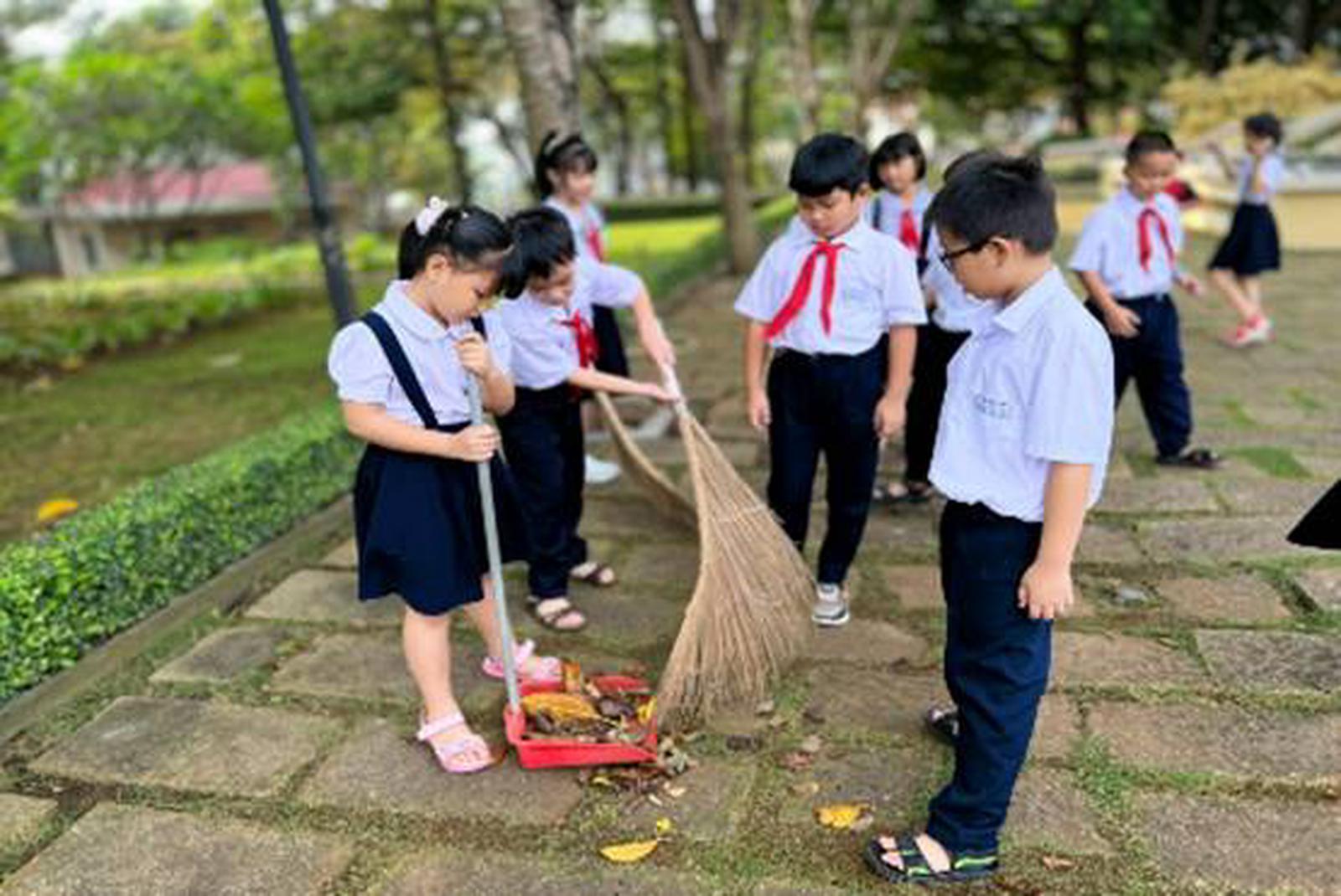 Tiếp đó, các thầy cô cùng các em học sinh đã tổ chức quét dọn vệ sinh khuôn viên chung quanh Đền thờ Liệt sĩ TP Vũng Tàu.