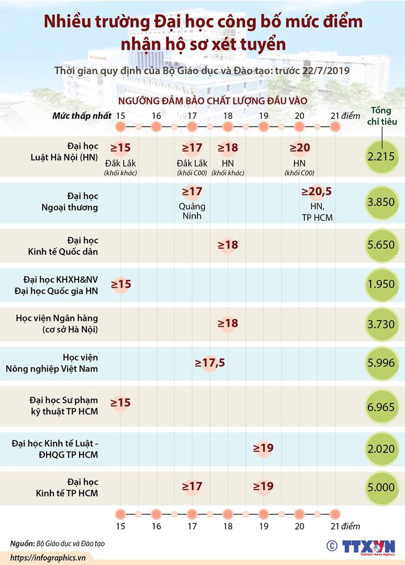 Theo quy định của Bộ Giáo dục và Đào tạo, trước 22/7, các trường Đại học, cao đẳng sư phạm, trung cấp sư phạm điều chỉnh, công bố mức điểm nhận hồ sơ xét tuyển./.