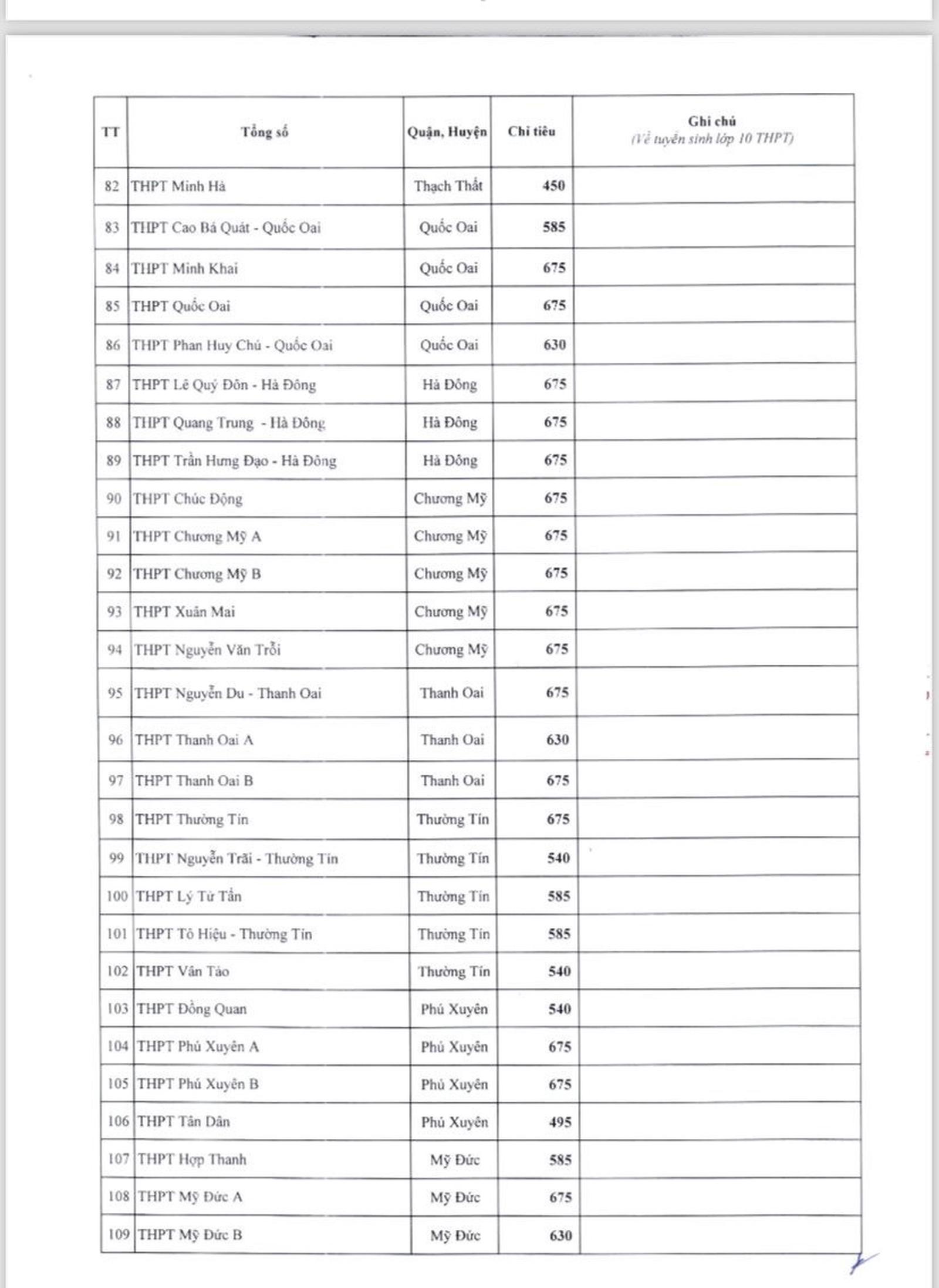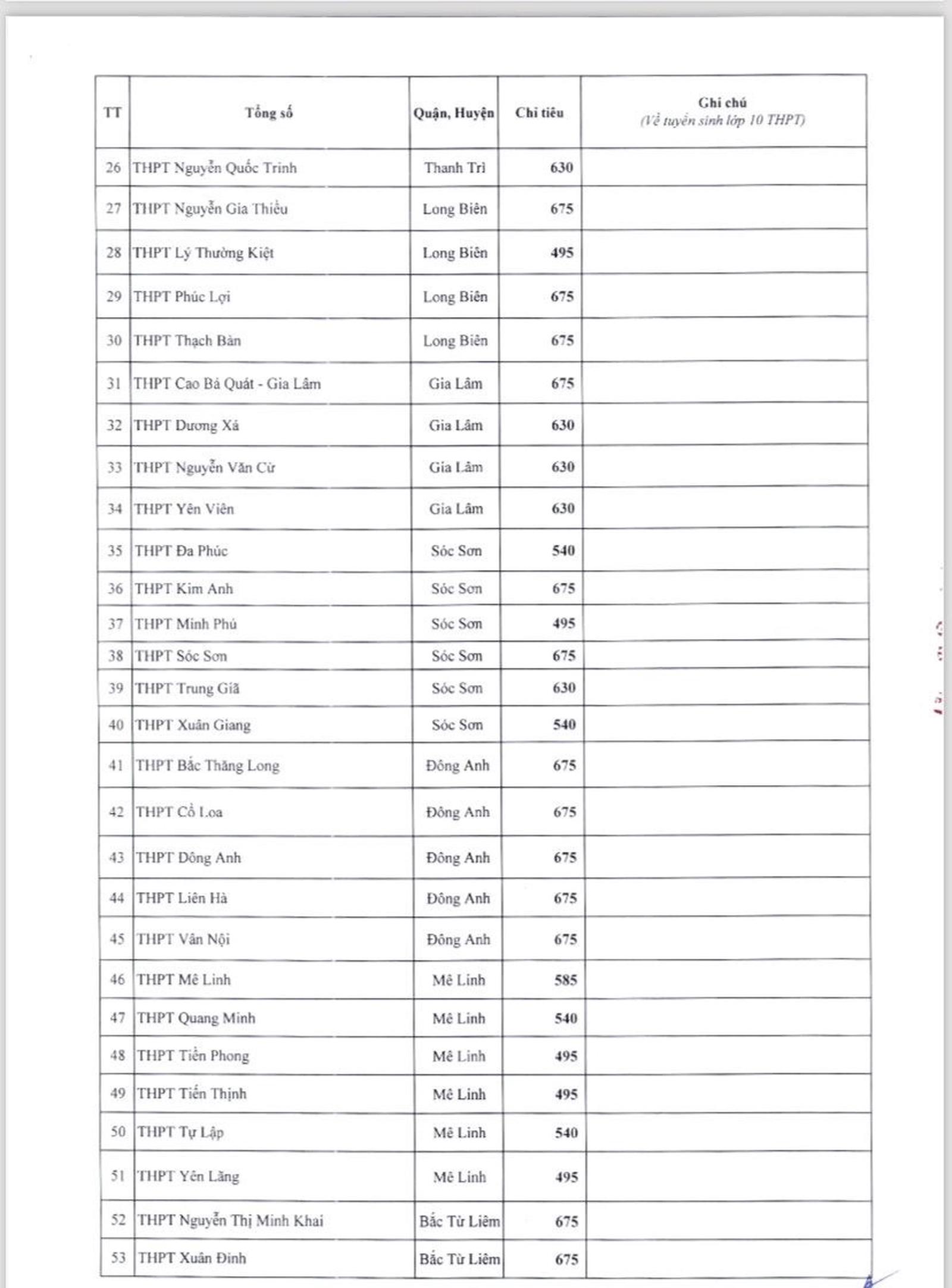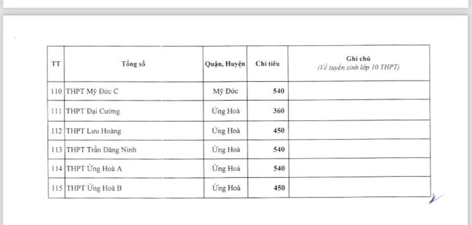 Trường tăng chỉ tiêu mạnh nhất là THPT Đông Mỹ, huyện Thanh Trì, từ 405 chỉ tiêu năm học trước lên 675 chỉ tiêu. Một số trường THPT như Kim Anh, Phú Xuyên B, Lưu Hoàng... tăng khoảng 90 - 135 chỉ tiêu mỗi trường.