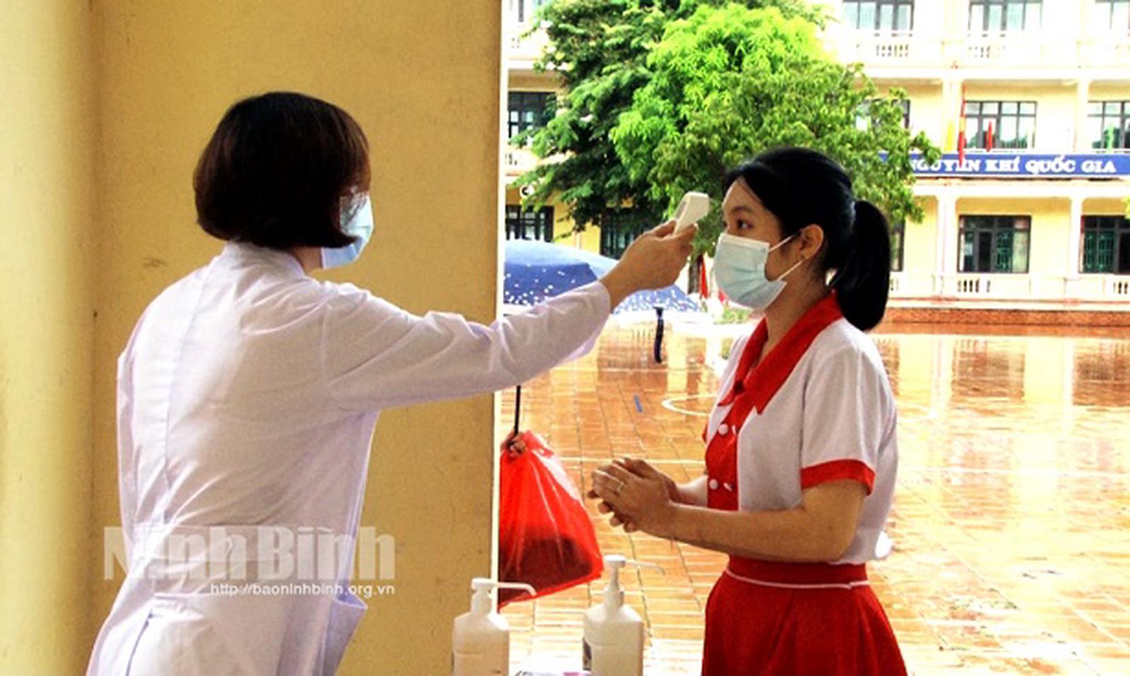 Ghi nhận tại một số cơ sở giáo dục trong tại tỉnh Ninh Bình, để chuẩn bị cho lễ khai giảng, công tác phòng dịch được đặc biệt quan tâm. Ngay từ cổng trường đã có nhân viên y tế trực để đo nhiệt độ, hướng dẫn giáo viên, học sinh sát khuẩn, đeo khẩu trang đầy đủ.