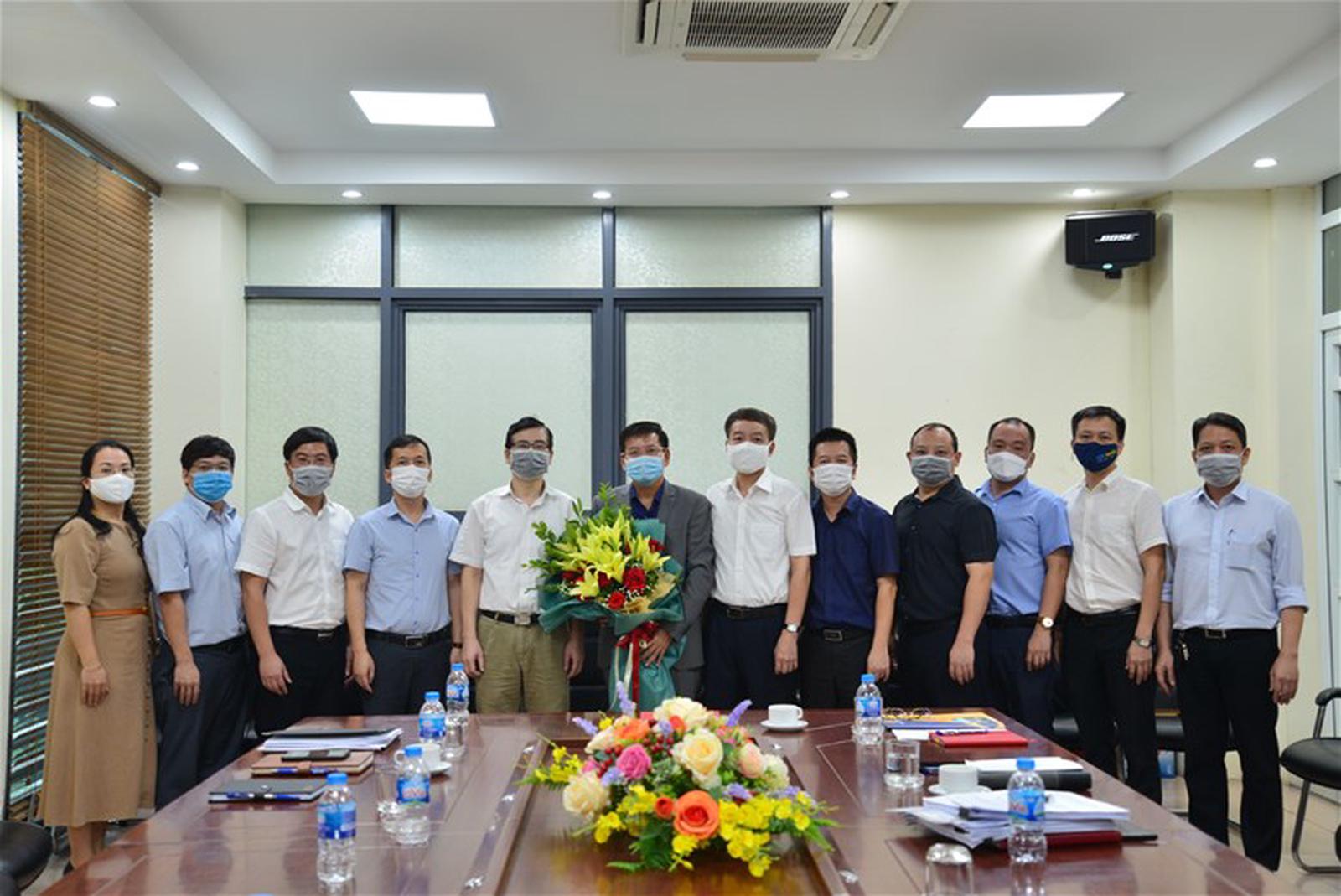 Tặng hoa chúc mừng Quyền Hiệu trưởng Trường Đại học Điện lực. Ảnh: ĐDĐL