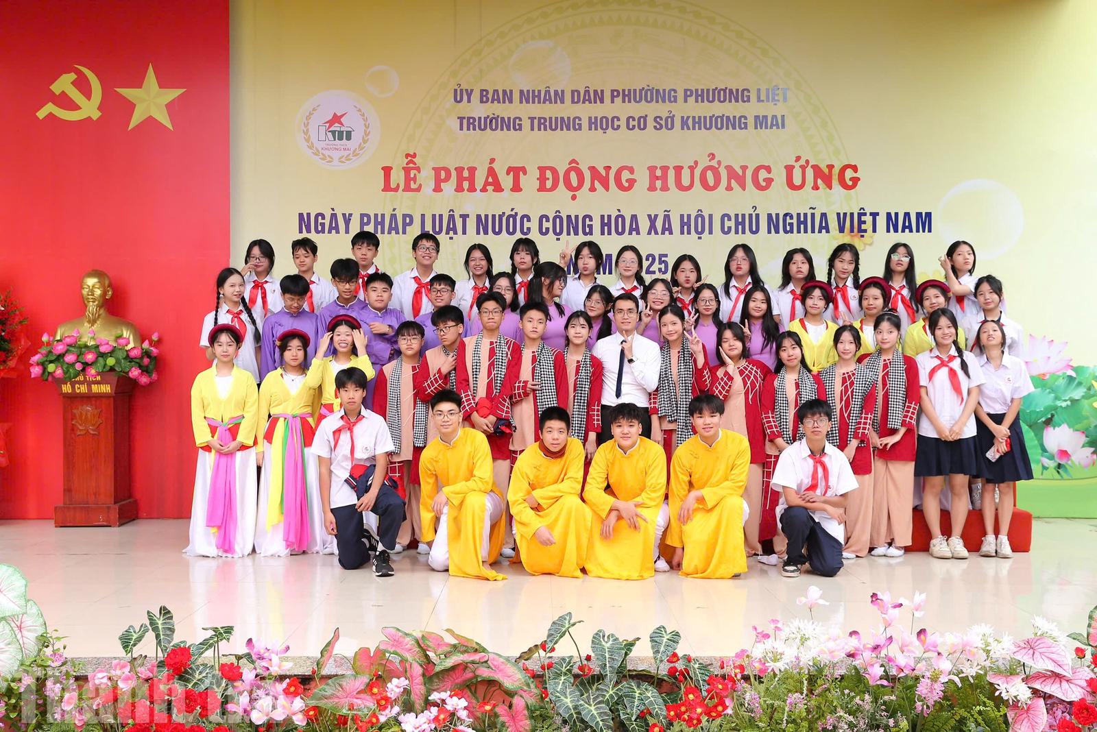 (Thanh tra) - Sáng 3/11, Trường THCS Khương Mai (quận Thanh Xuân, Hà Nội) tổ chức Lễ phát động hưởng ứng Ngày Pháp luật Việt Nam năm 2025 với chủ đề “Sống và làm việc theo Hiến pháp và pháp luật”. Sự kiện nhằm nâng cao nhận thức, bồi dưỡng văn hóa pháp lý cho học sinh – những công dân trẻ của Thủ đô.