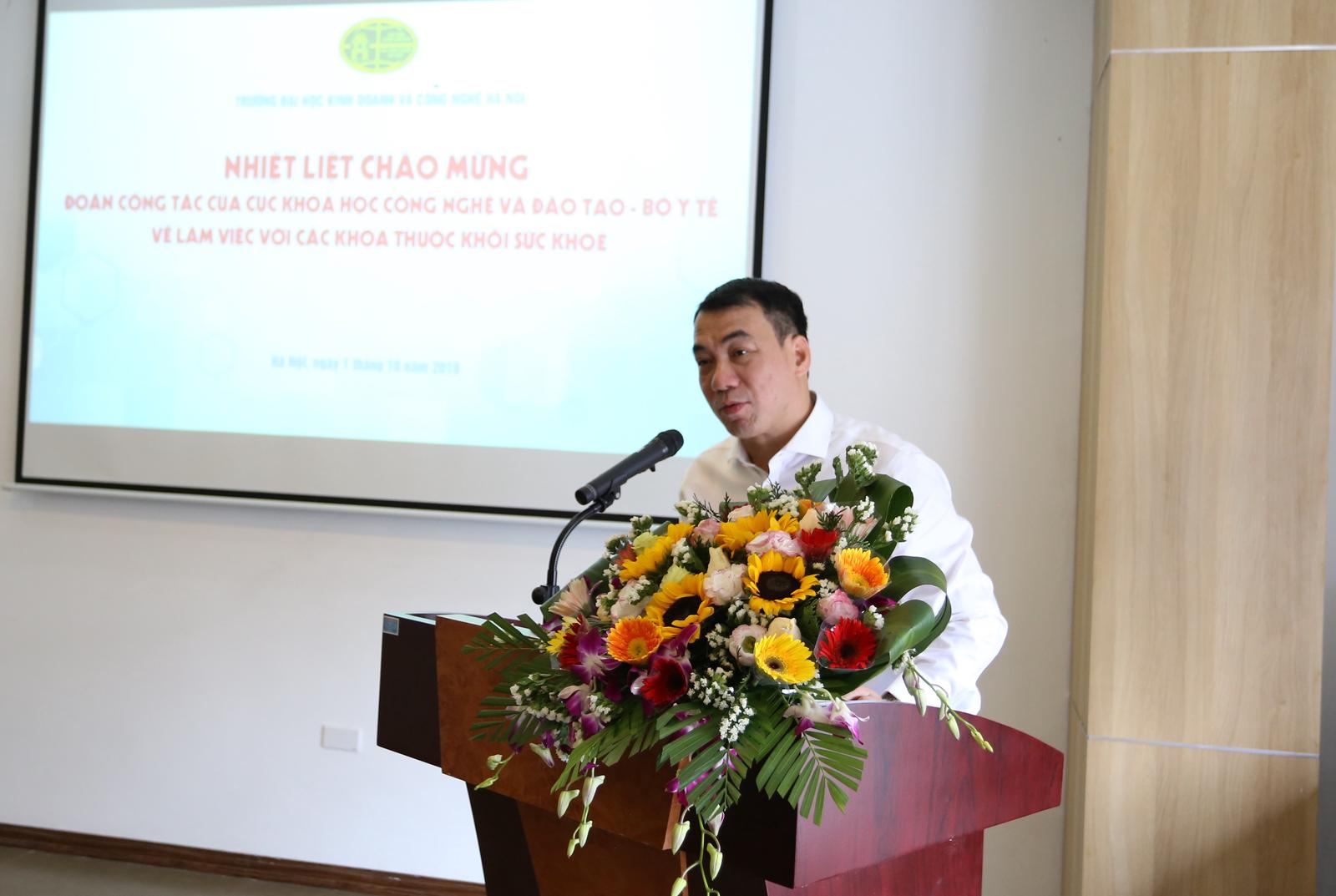 Chia sẻ tại buổi làm việc, TS. Nguyễn Ngô Quang, Phó Cục trưởng phụ trách Cục Khoa học Công nghệ và Đào tạo mong muốn các trường đại học, trong đó có Trường ĐH Kinh doanh và Công nghệ Hà Nội sẽ tiếp tục phối hợp chặt chẽ với các cơ quan quản lý của Bộ Y tế trong hoạt động đào tạo và nghiên cứu khoa học, đặc biệt là đối với công tác đào tạo liên tục.