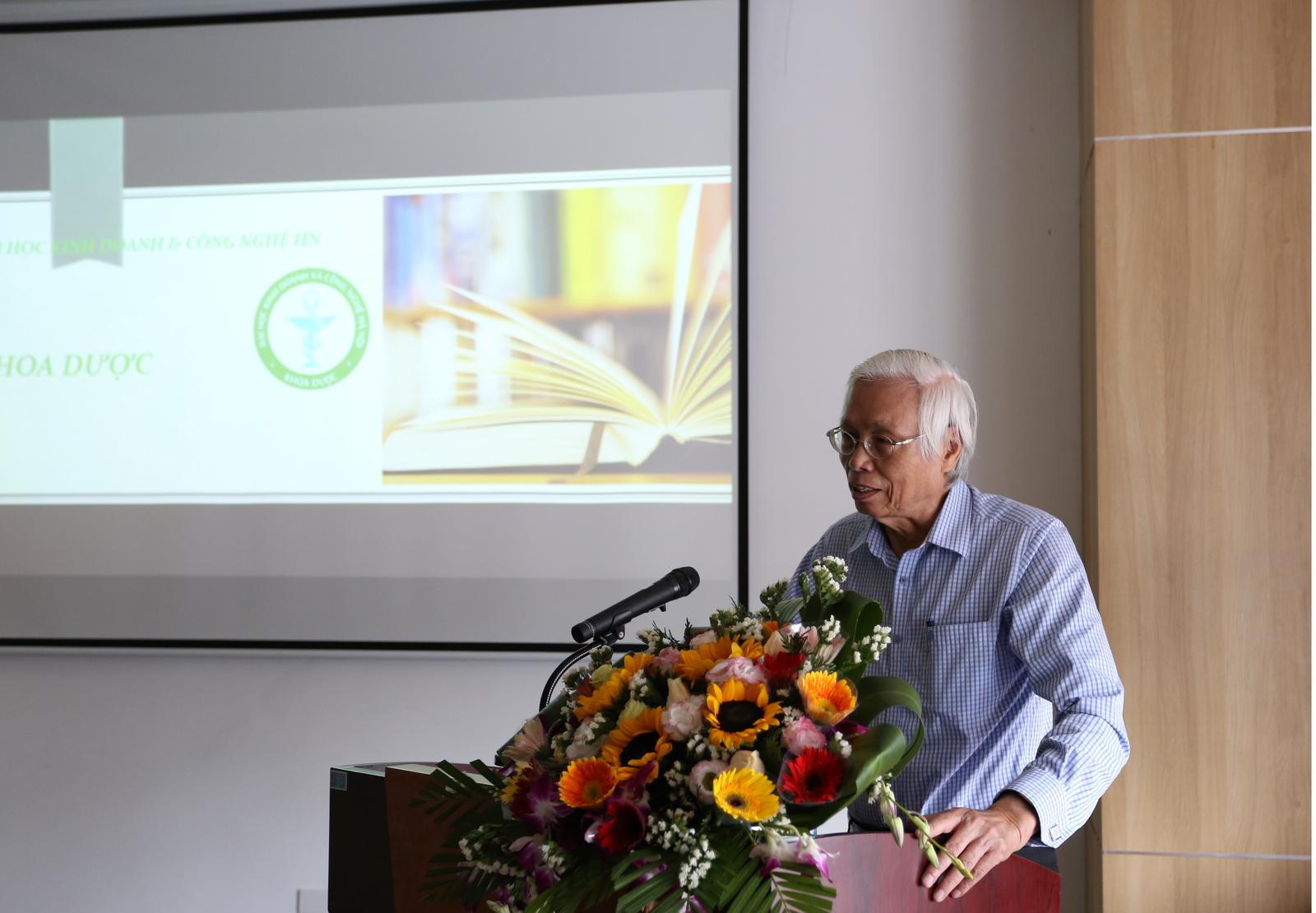 PGS.TS. Lê Văn Truyền, Chủ nhiệm Khoa Dược giới thiệu về Khoa tại buổi đón tiếp. Ảnh:NĐ