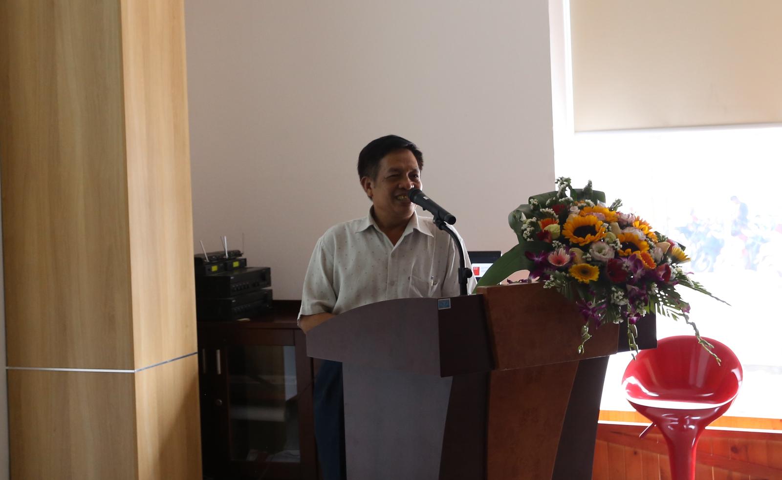 GS.TS.NGND Vũ Văn Hóa, Phó Hiệu trưởng Trường ĐH Kinh doanh và Công nghệ Hà Nội phát biểu tại buổi đón tiếp. Ảnh: NĐ