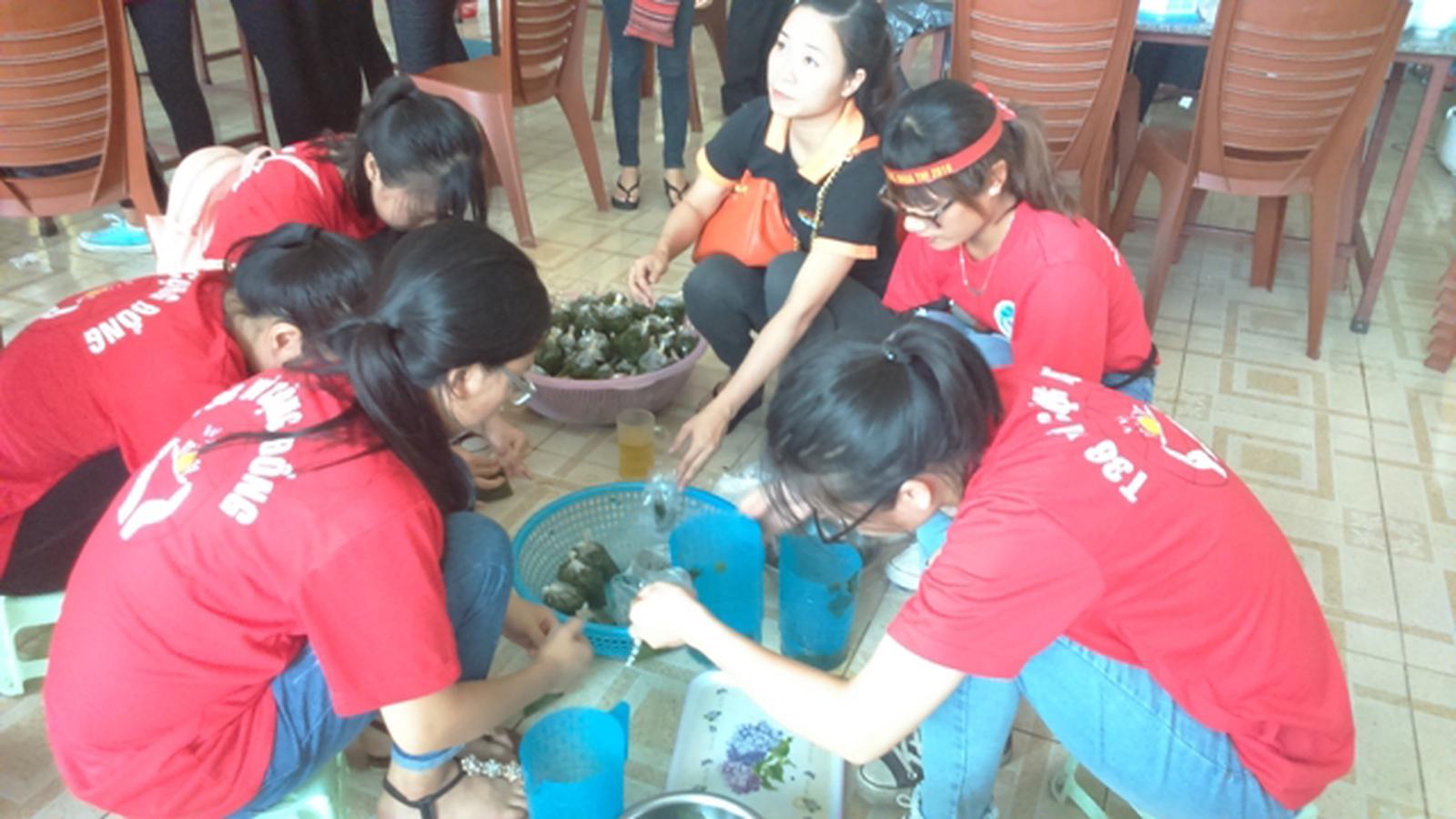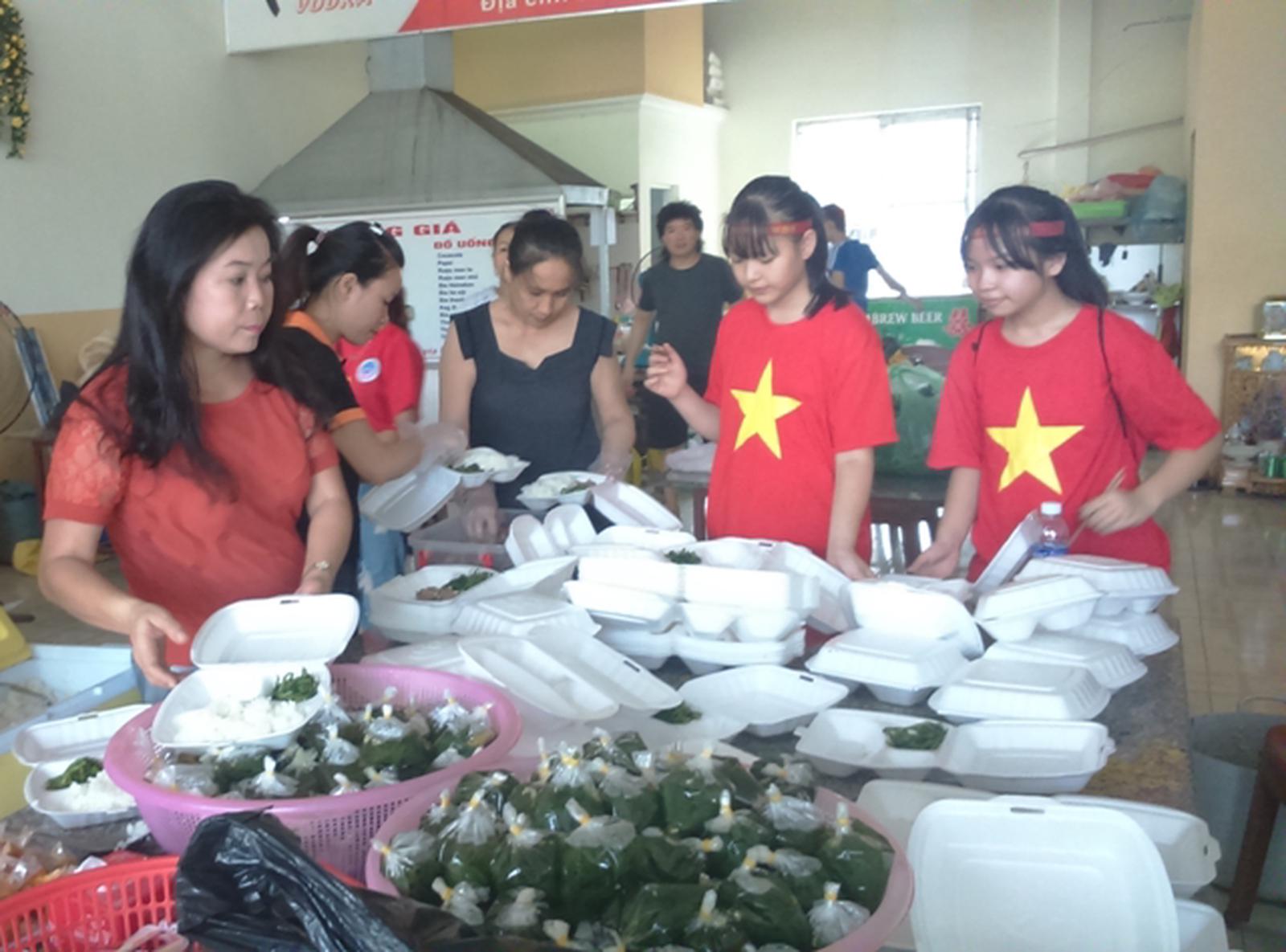 Các tình nguyện viên làm đồ ăn miễn phí cho các thí sinh. Ảnh: Văn Thanh