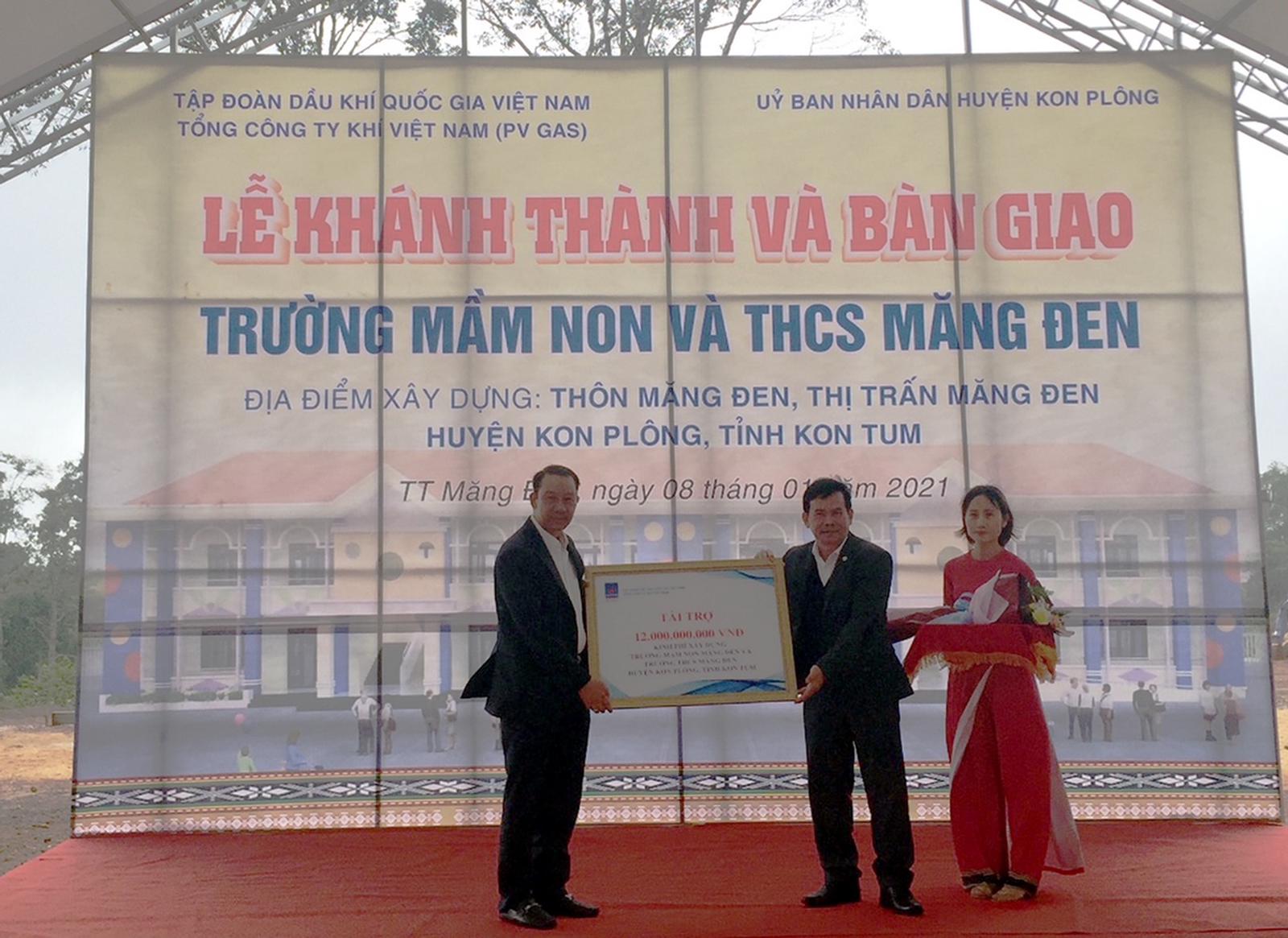Tại lễ khánh thành công trình, thầy giáo Hoàng Ngọc Đặng – Hiệu trưởng trường THCS Măng Đen đã thay mặt thầy cô và học trò 2 ngôi Trường THCS và Mầm non phát biểu bày tỏ niềm xúc động trước sự quan tâm hỗ trợ kịp thời của PV GAS giúp một địa phương vùng sâu, vùng xa còn đặc biệt khó khăn như huyện Kon Plong có thêm 2 ngôi trường mới khang trang, sạch đẹp, qua đó đã giúp giải quyết kịp thời nhu cầu thiếu thốn cơ sở vật chất cho giáo dục ở địa phương.