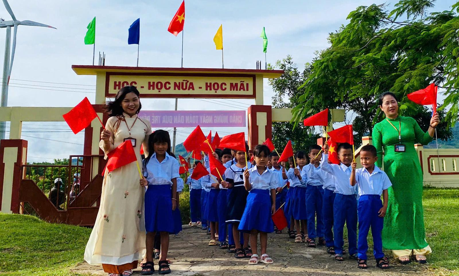 Lễ đón các em học sinh lớp 1 tại Trường Phổ thông Dân tộc bán trú TH&THCS Hướng Linh, xã Hướng Linh, huyện Hướng Hóa, tỉnh Quảng Trị. Ảnh: Minh Tân