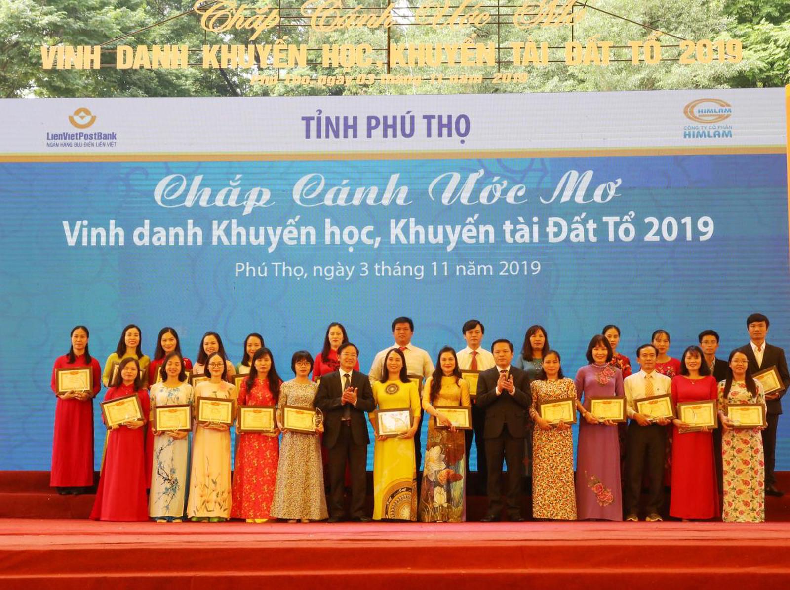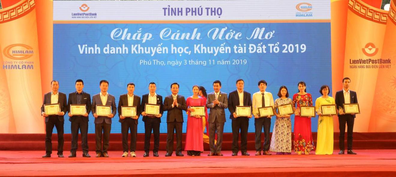 (Thanh tra) - Sáng ngày 03/11/2019 tại Khu Di tích Lịch sử Quốc gia Đền Hùng, tỉnh Phú Thọ đã long trọng tổ chức Chương trình “Chắp cánh ước mơ - Vinh danh khuyến học, khuyến tài đất Tổ 2019”. Đây là một hoạt động vinh danh và khen thưởng thường niên của Quỹ Khuyến học, Khuyến tài Đất tổ do LienVietPostBank và Công ty Cổ phần Him Lam, nguyên Cổ đông Sáng lập chủ chốt của Ngân hàng thành lập từ năm 2011.