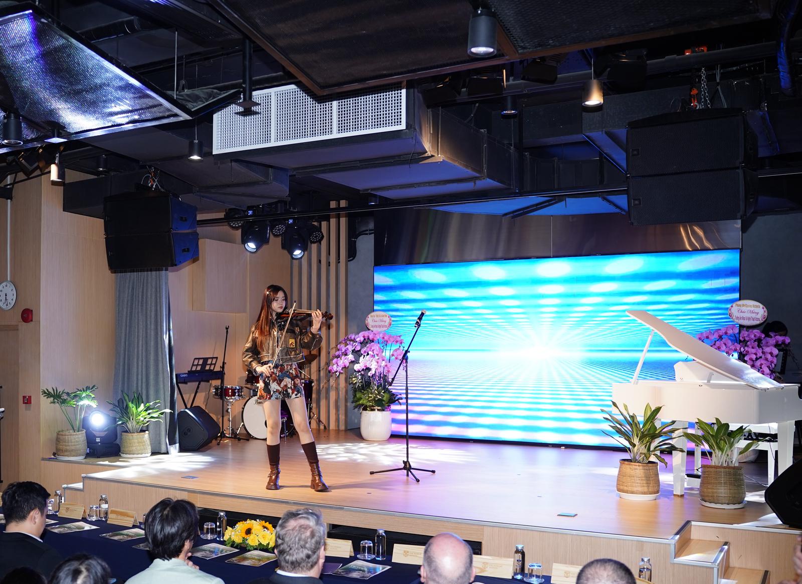 Nghệ sĩ Izara Thiên Nga - Học sinh Victoria School trổ tài chơi violin tại sự kiện