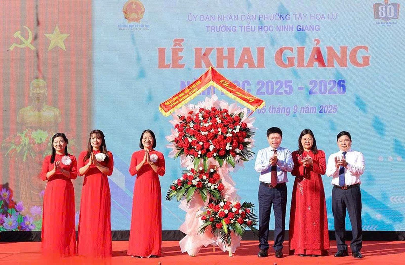 Nhân dịp này, Bí thư Tỉnh ủy Ninh Bình Trương Quốc Huy đã tặng hoa chúc mừng thầy và trò nhà trường, thể hiện sự tin tưởng, kỳ vọng vào những thành tích mới trong năm học 2025- 2026.