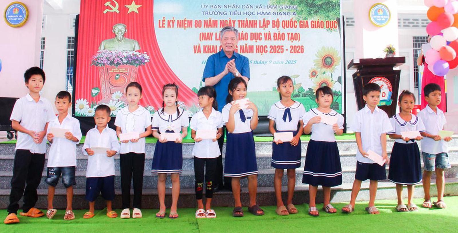 Tại Trường Tiểu học Hàm Giang A (ấp Trà Tro A, xã Hàm Giang, huyện Trà Ôn), ông Ngô Chí Cường - Ủy viên Ban Chấp hành Trung ương Đảng, Bí thư Tỉnh ủy, Trưởng đoàn Đại biểu Quốc hội khóa XV tỉnh Vĩnh Long - đã đến dự lễ khai giảng. Đây là điểm cầu trực tuyến được kết nối với cả nước, mang ý nghĩa đặc biệt trong ngày khai trường. Năm học 2025 - 2026, trường đón 401 học sinh, trong đó 94% là con em đồng bào Khmer.