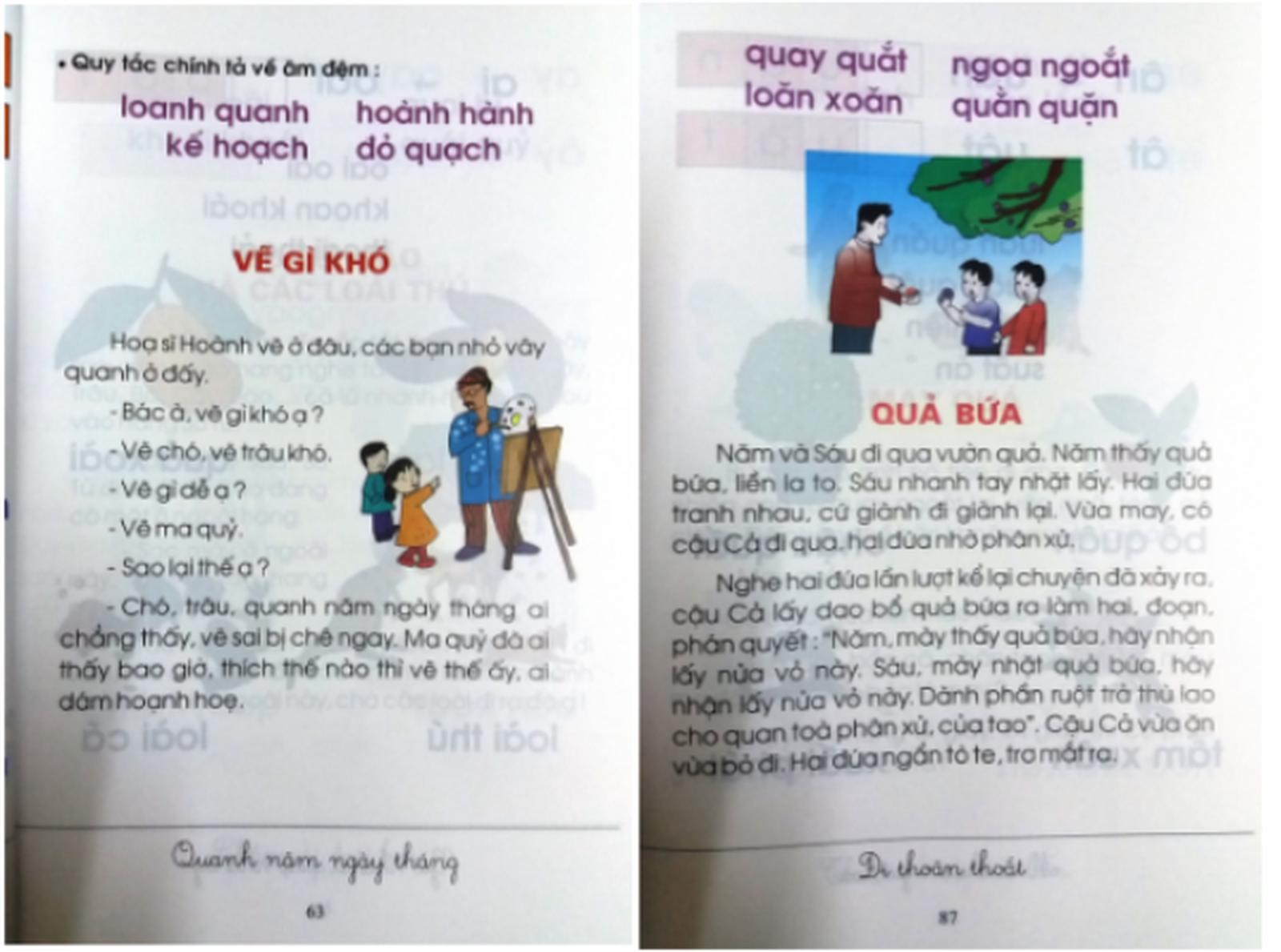 Cho rằng nội dung đưa vào giảng dạy cho trẻ là chưa phù hợp, một giáo viên dạy Văn ở Bỉm Sơn (Thanh Hóa) chia sẻ: Nội dung câu chuyện không có tính giáo dục. Mày - tao trong bài “Quả bứa” lời văn thiếu sự tinh tế, chọn lọc. Còn bài “Vẽ gì khó”, câu trả lời của họa sĩ người lớn cộc lốc, thiếu thành phần chính. Thứ 2 là ví dụ về ma quỷ gây hoang mang tâm lí trẻ thơ. Vậy là kiến thức giáo dục vô tình thừa nhận có ma quỷ thật hay sao?