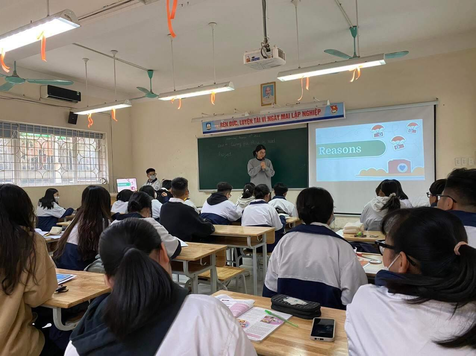 Các tiết học Tiếng Anh được thiết kế theo hướng gợi mở giúp tăng cường tính chủ động trong học tập và khả năng phát triển tư duy độc lập của học sinh. Ảnh: Trường Trung học phổ thông Nguyễn Gia Thiều.