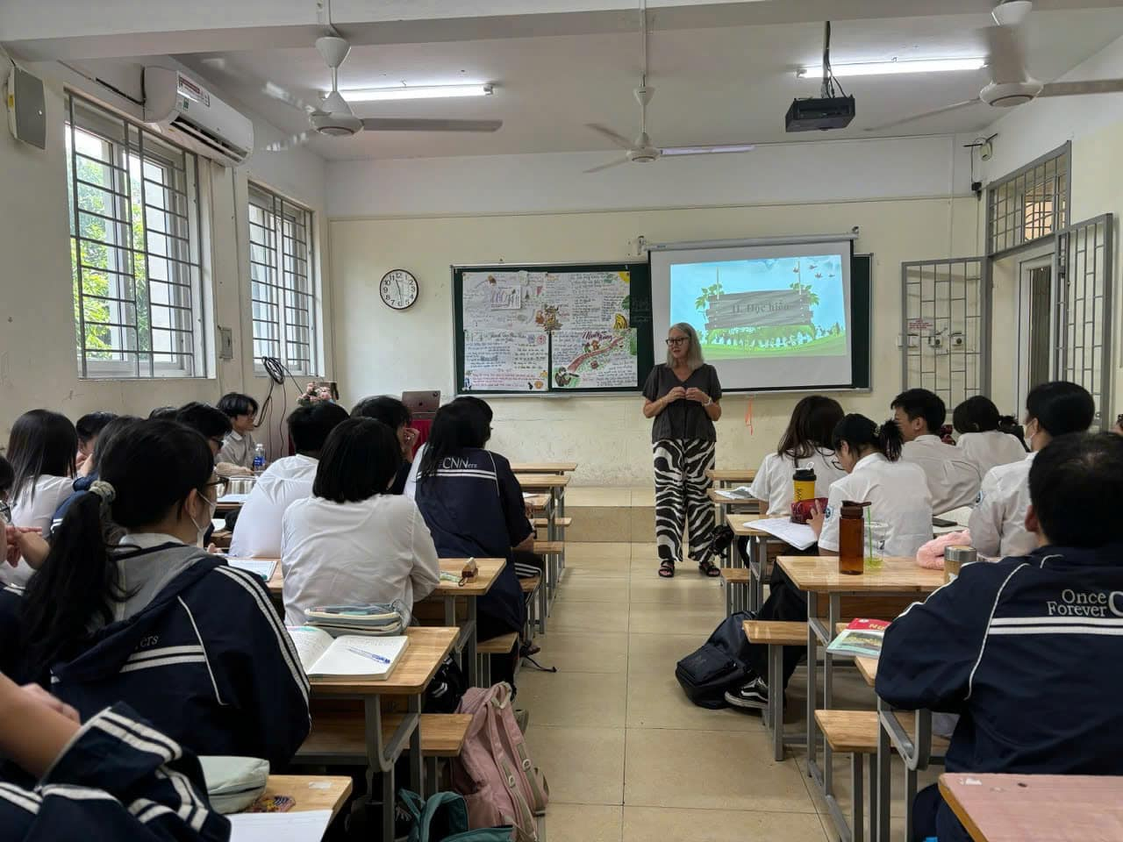 Để học tốt môn Tiếng Anh, học sinh cần phát triển toàn diện 4 kỹ năng sử dụng ngoại ngữ và tự tin nói chuyện với người nước ngoài. Ảnh: Trường Trung học phổ thông Chuyên Ngoại ngữ (Trường Đại học Ngoại ngữ, Đại học Quốc gia Hà Nội).