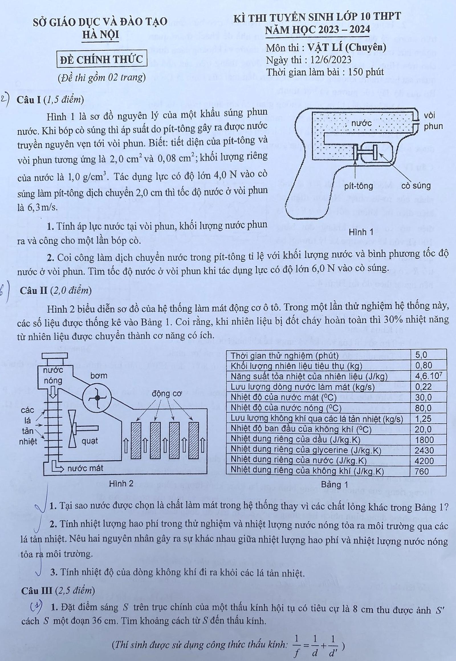 Đề môn Vật lý vào lớp 10 chuyên của Hà Nội. Ảnh: H.C
