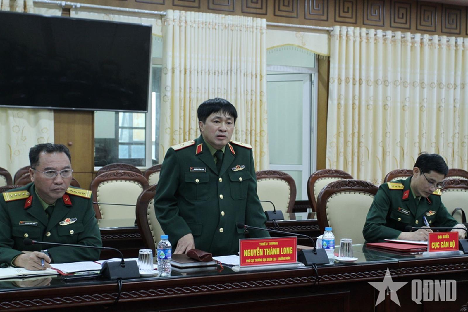 Thiếu tướng Nguyễn Thành Long, Phó cục trưởng Cục Quân lực, phát biểu tại Hội nghị về việc thành lập Trường Thiếu sinh quân trực thuộc Quân khu 1. Ảnh: qdnd.vn
