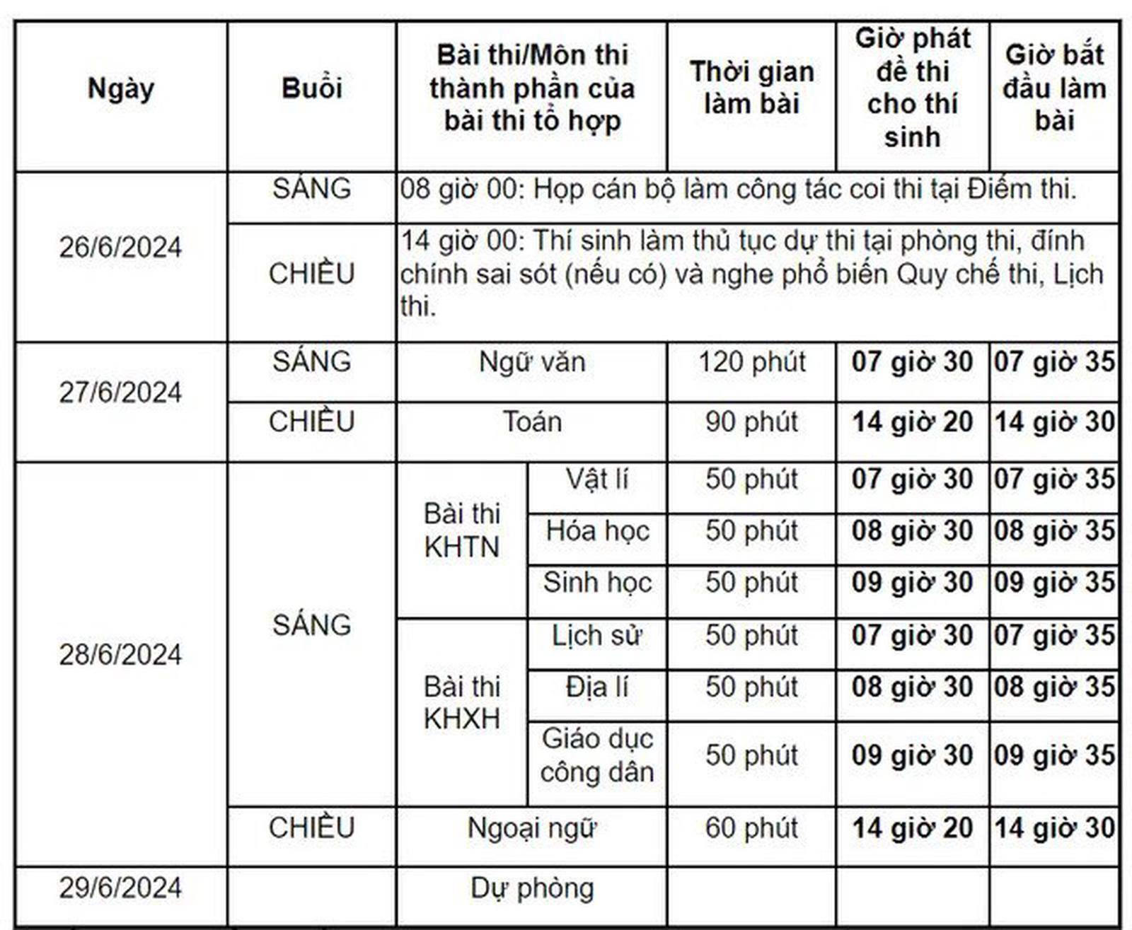 Sáng 27/6, các thí sinh bắt đầu thi môn Ngữ văn trong thời gian 120 phút, chiều cùng ngày, các em thi môn Toán trong thời gian 90 phút.