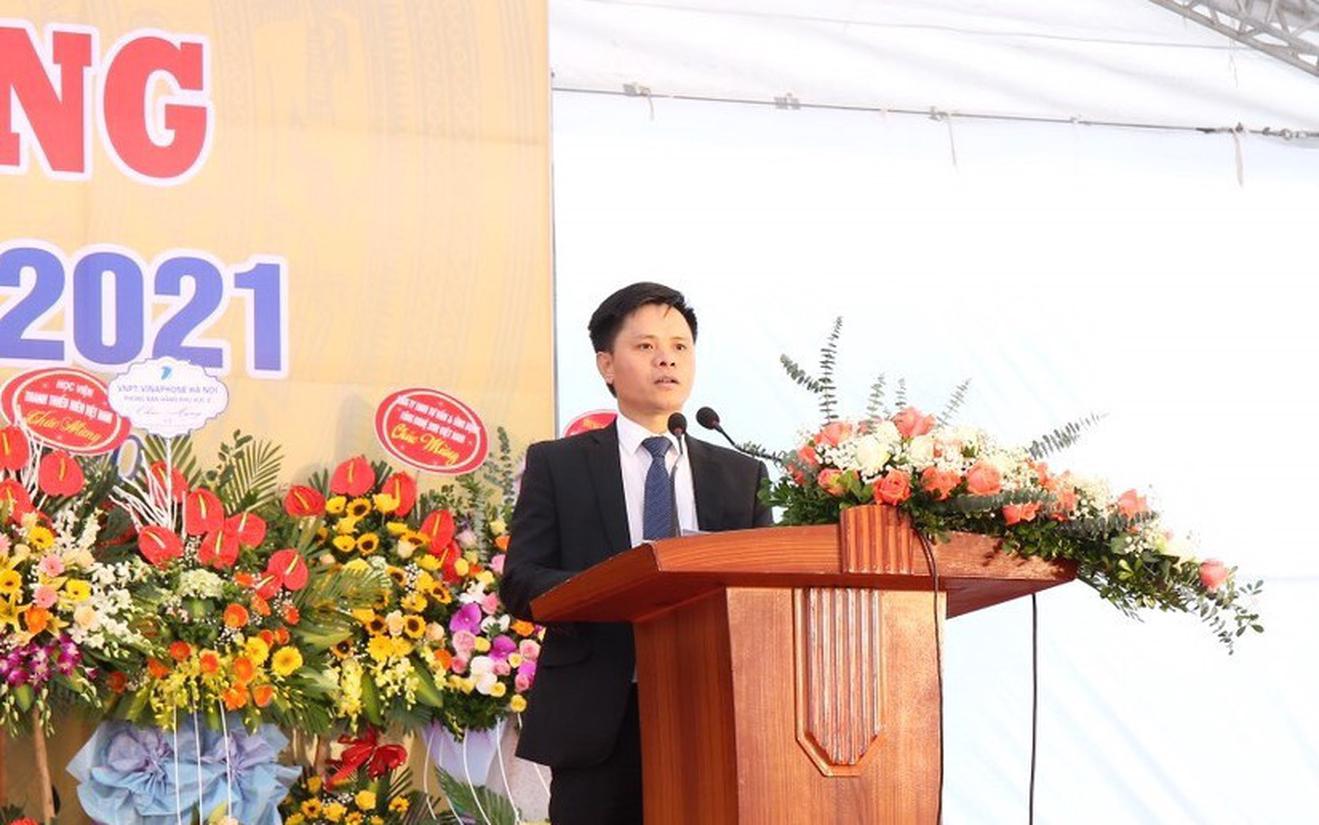 TS. Nguyễn Xuân Sang, Hiệu trưởng nhà trường phát biểu chào mừng các tân sinh viên trong lễ khai giảng