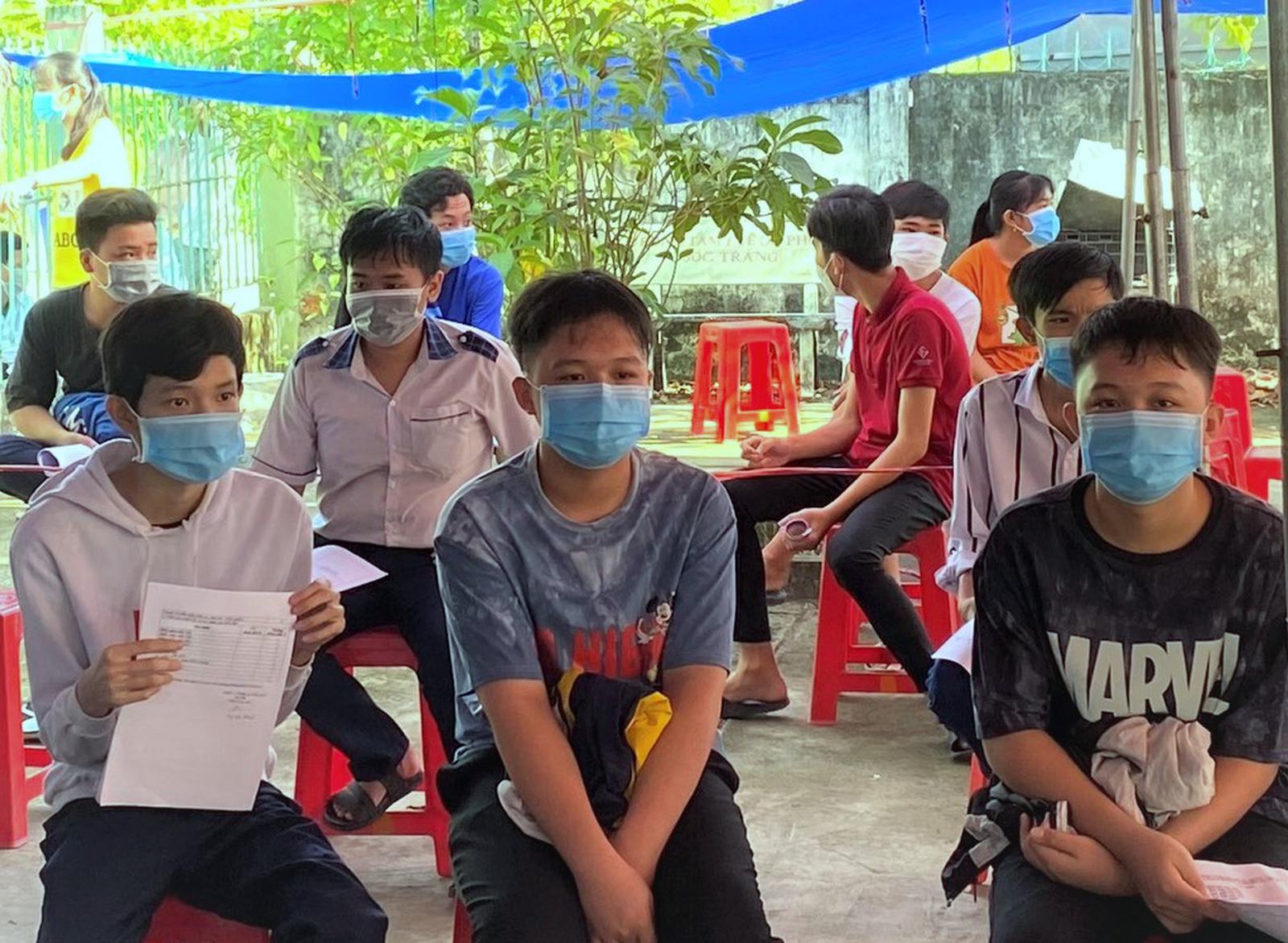 Học sinh Trường THPT Nguyễn Khuyến, thị xã Vĩnh Châu, tiêm vắc xin phòng Covid-19